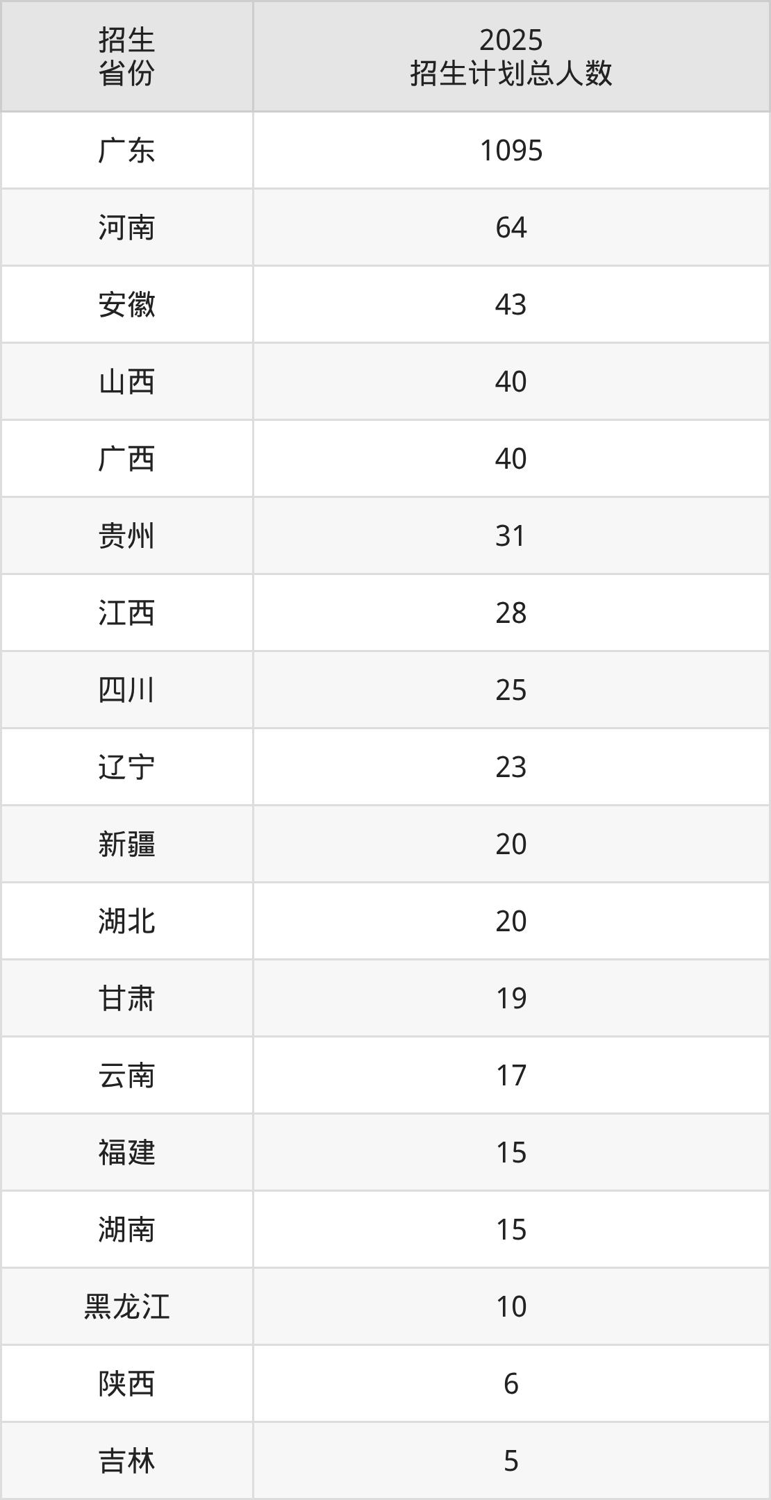 2025年广东环境保护工程职业学院面向全国18个省市开展专科招生;招生专业共30个,招生人数共1516人。2025年在广东省招生计划总人数是1095人,其中,广东环境保护工程职业学院在广东省招生人数最多的是环境工程技术。广东环境保护工程职业学院在各省具体招生人数情况如下表。