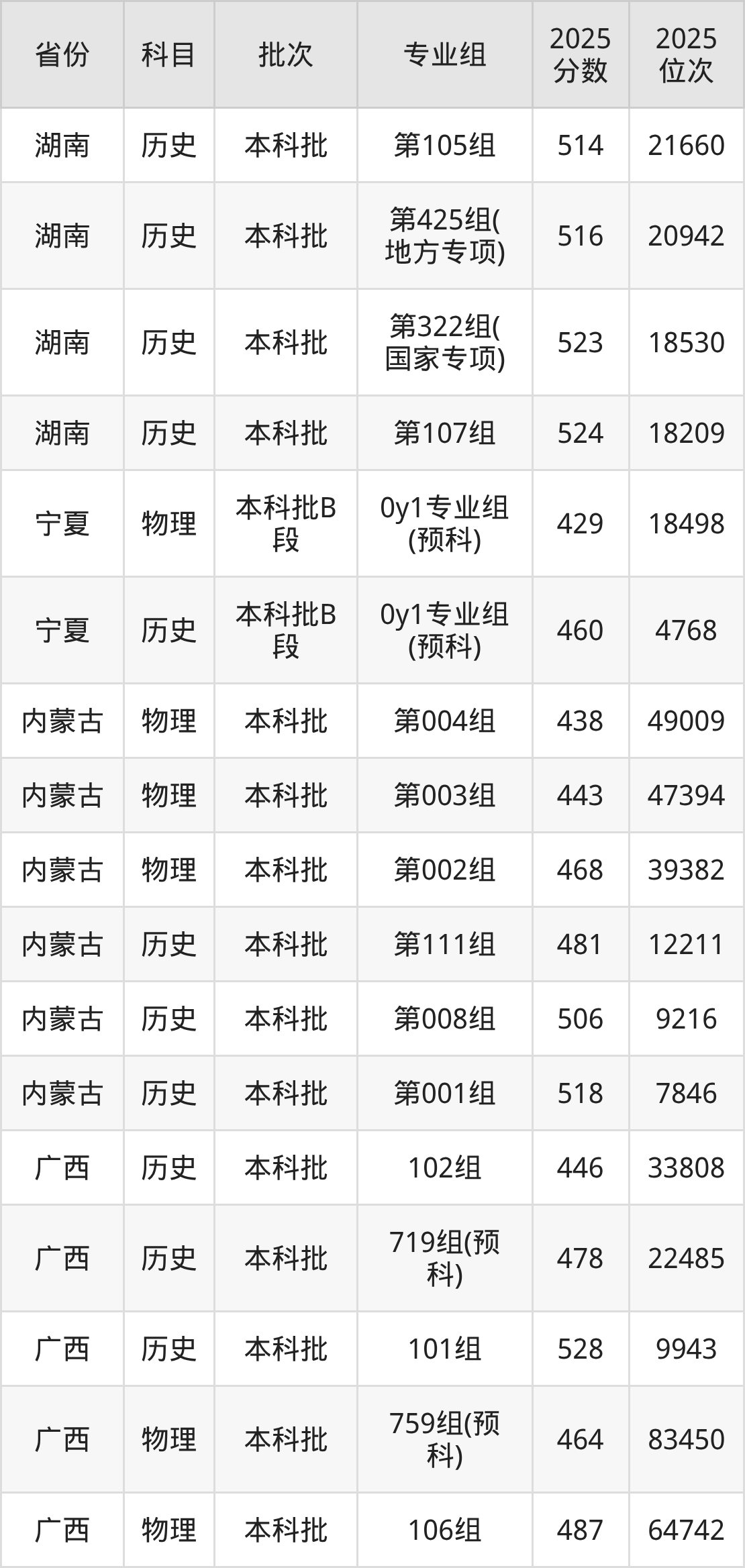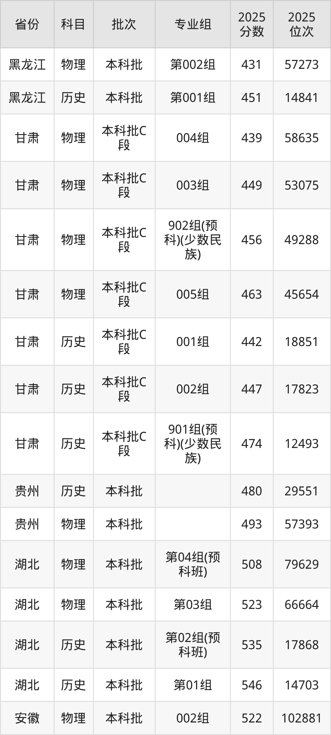 普通类本科物理类最低508分,本科历史类最低543分