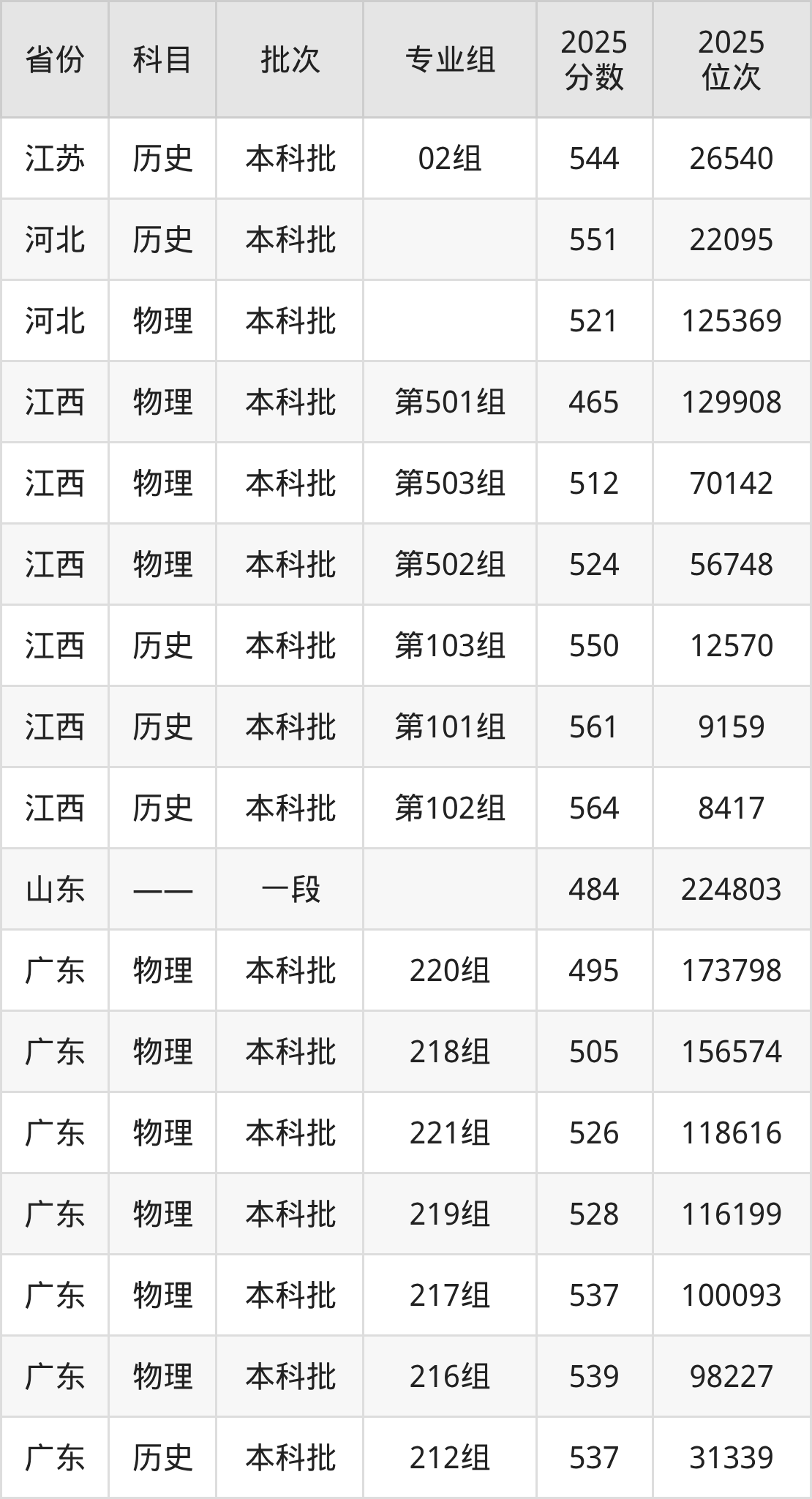 普通类本科物理类最低495分,本科历史类最低537分
