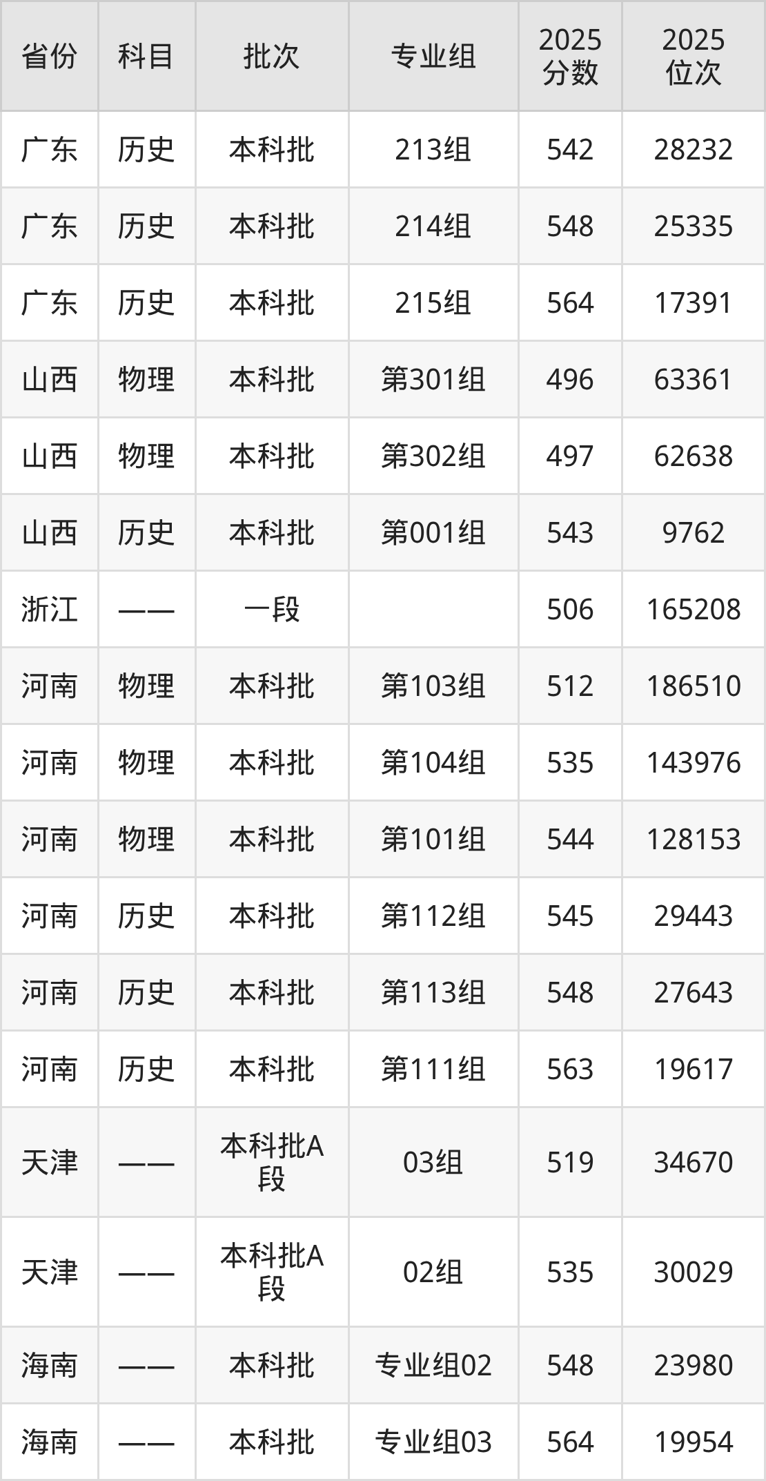吉首大学第001组:2025年投档录取最低分为543分,录取最低位次为9762名。