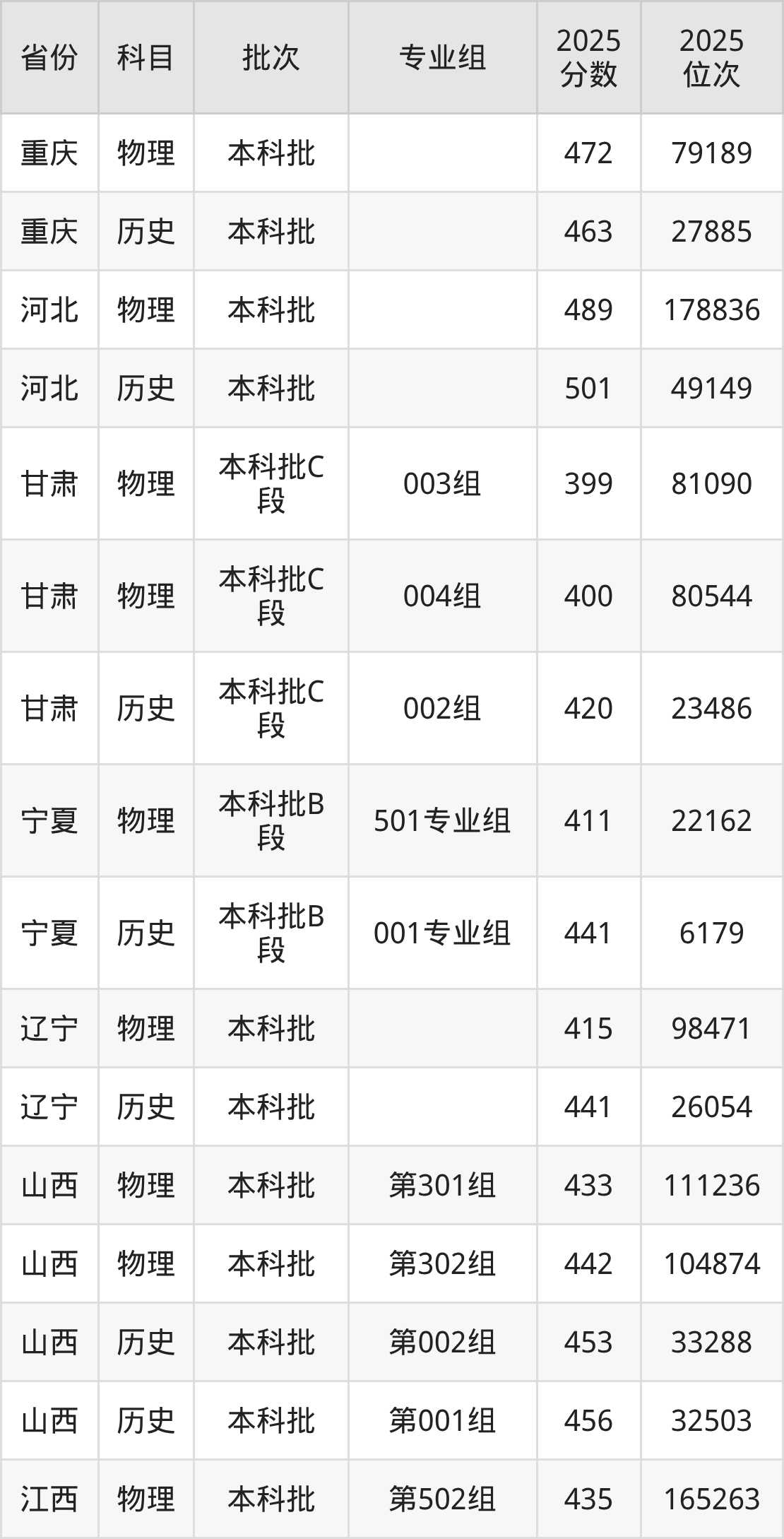 南昌交通学院03组:2025年投档录取最低分为471分,录取最低位次为197910名。