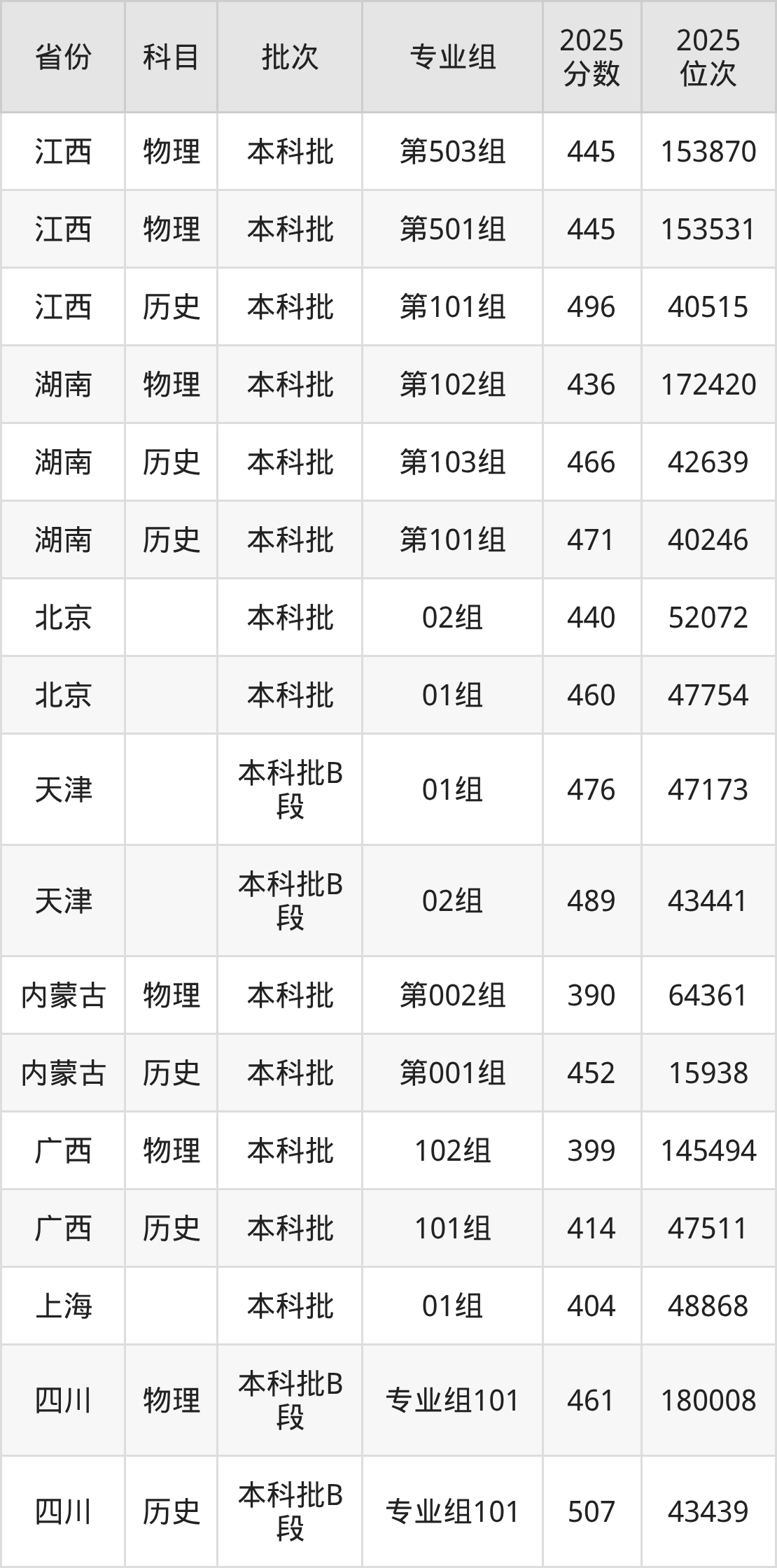 下面是2025年南昌交通学院全国录取分数线一览表,请查阅。