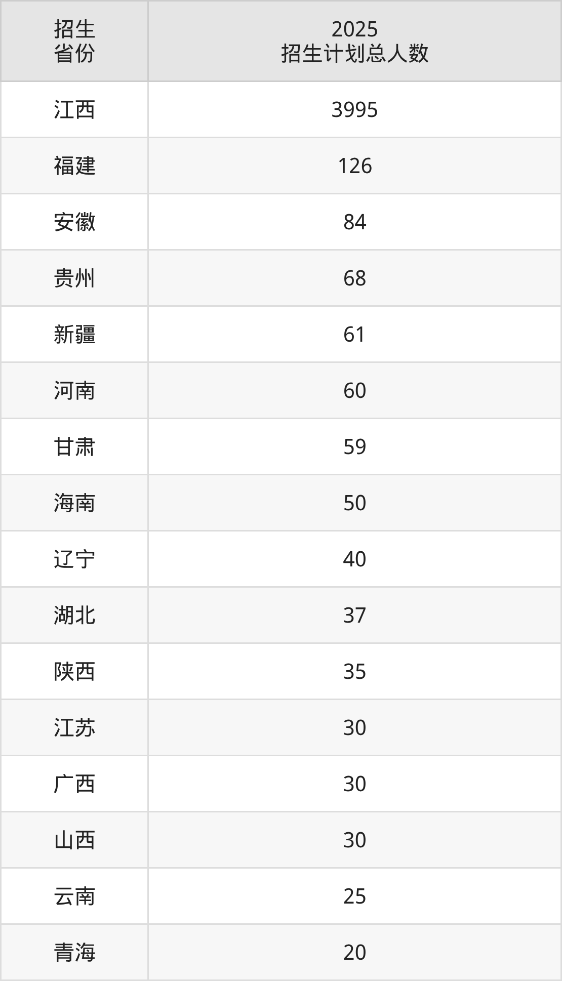 2025年南昌交通学院面向全国28个省市开展本科招生;招生专业共34个,招生人数共4913人。2025年在江西省招生计划总人数是3995人,其中,南昌交通学院在江西省招生人数最多的是电气工程及其自动化。南昌交通学院在各省具体招生人数情况如下表。
