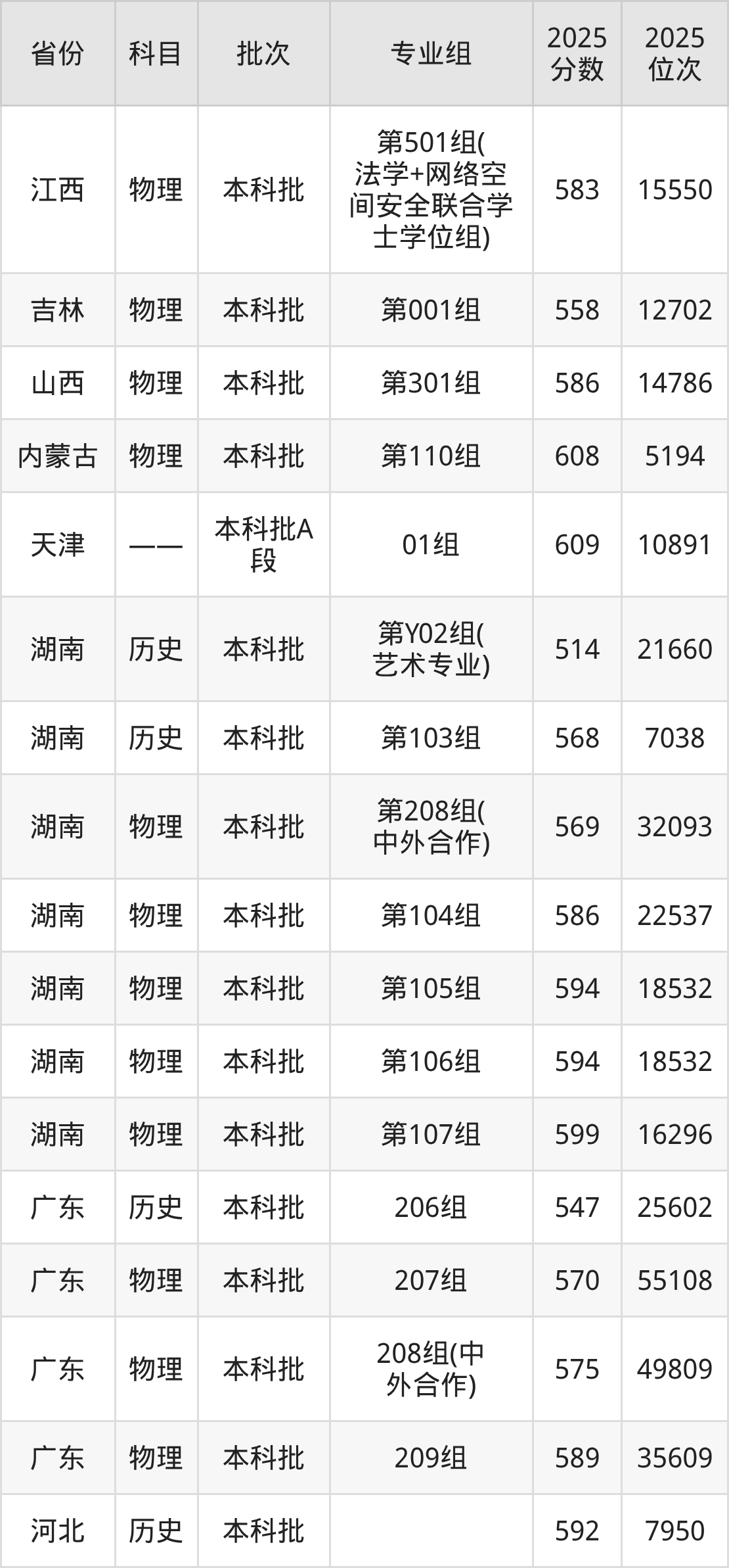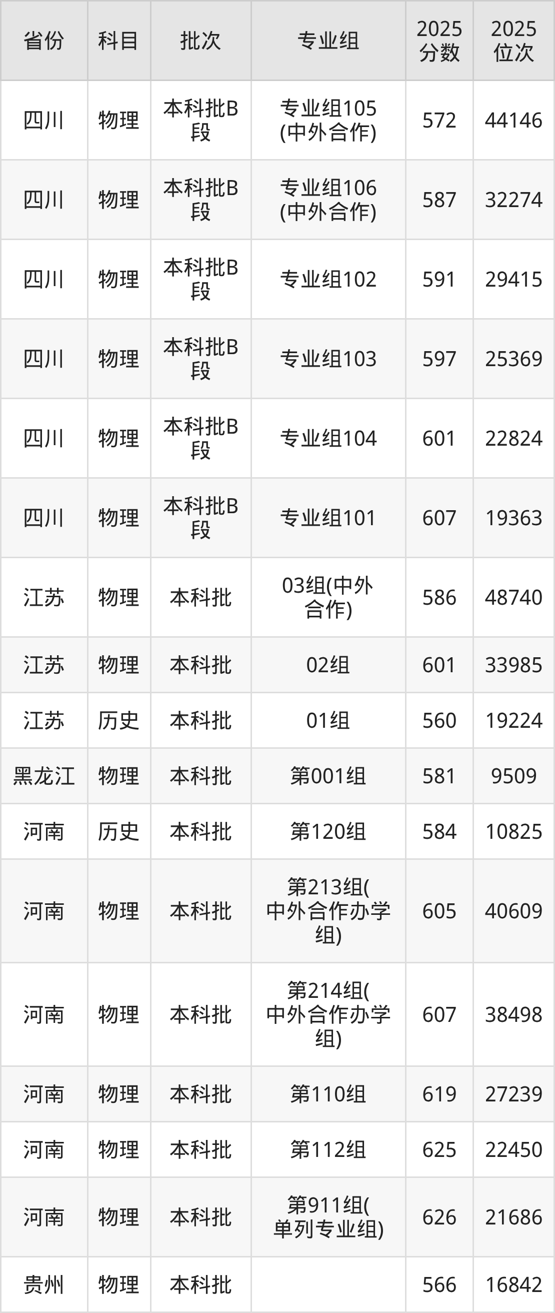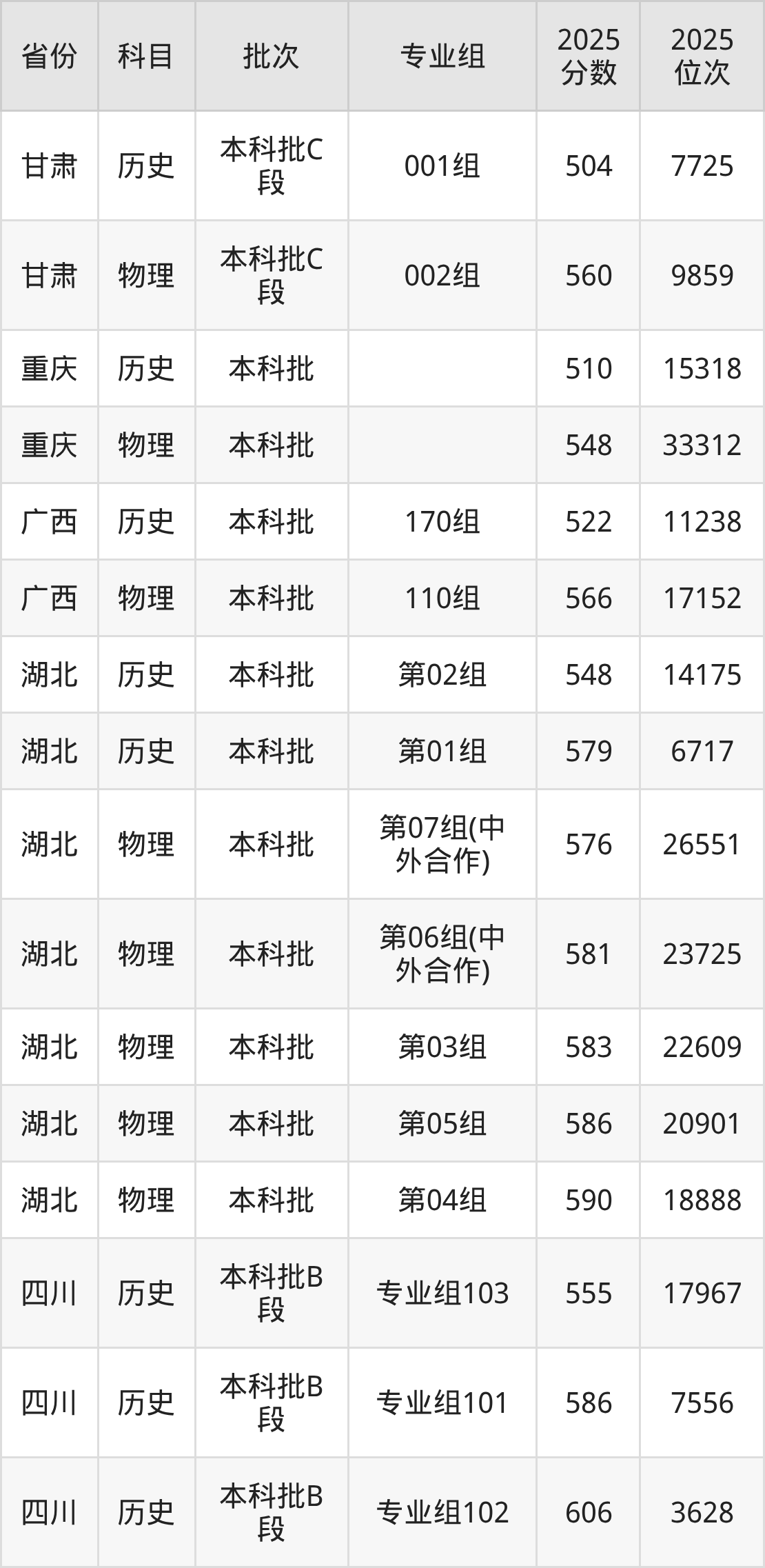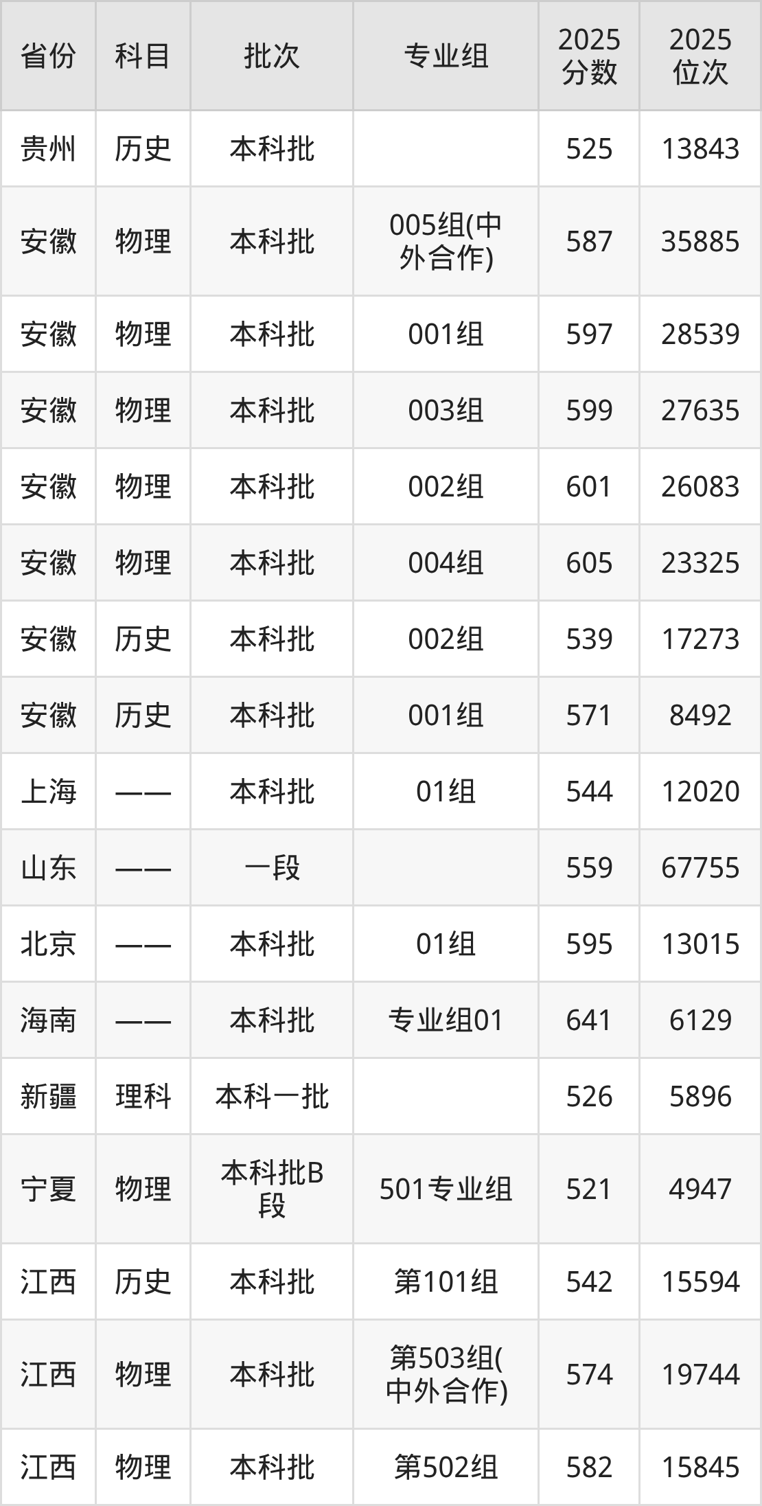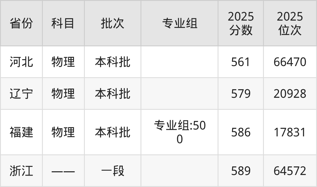 2025年在本科物理类进行招生,各专业组分数线详情如下:
