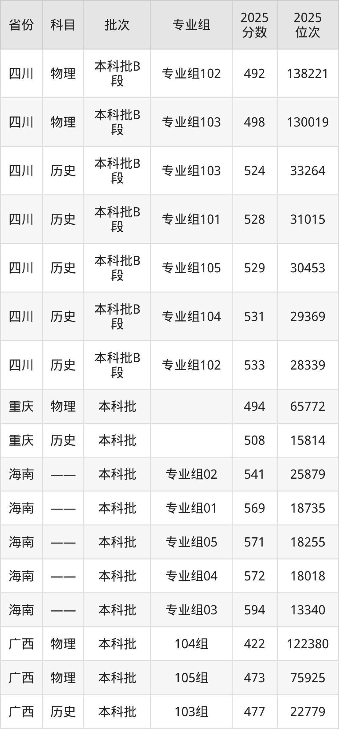 阿坝师范学院专业组101:2025年投档录取最低分为492分,录取最低位次为138221名。