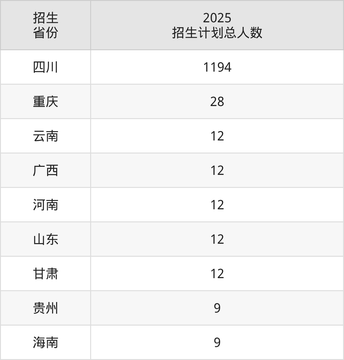 2025年阿坝师范学院面向全国9个省市开展本科招生;招生专业共20个,招生人数共1300人。2025年在四川省招生计划总人数是1194人,其中,阿坝师范学院在四川省招生人数最多的是数学与应用数学。阿坝师范学院在各省具体招生人数情况如下表。