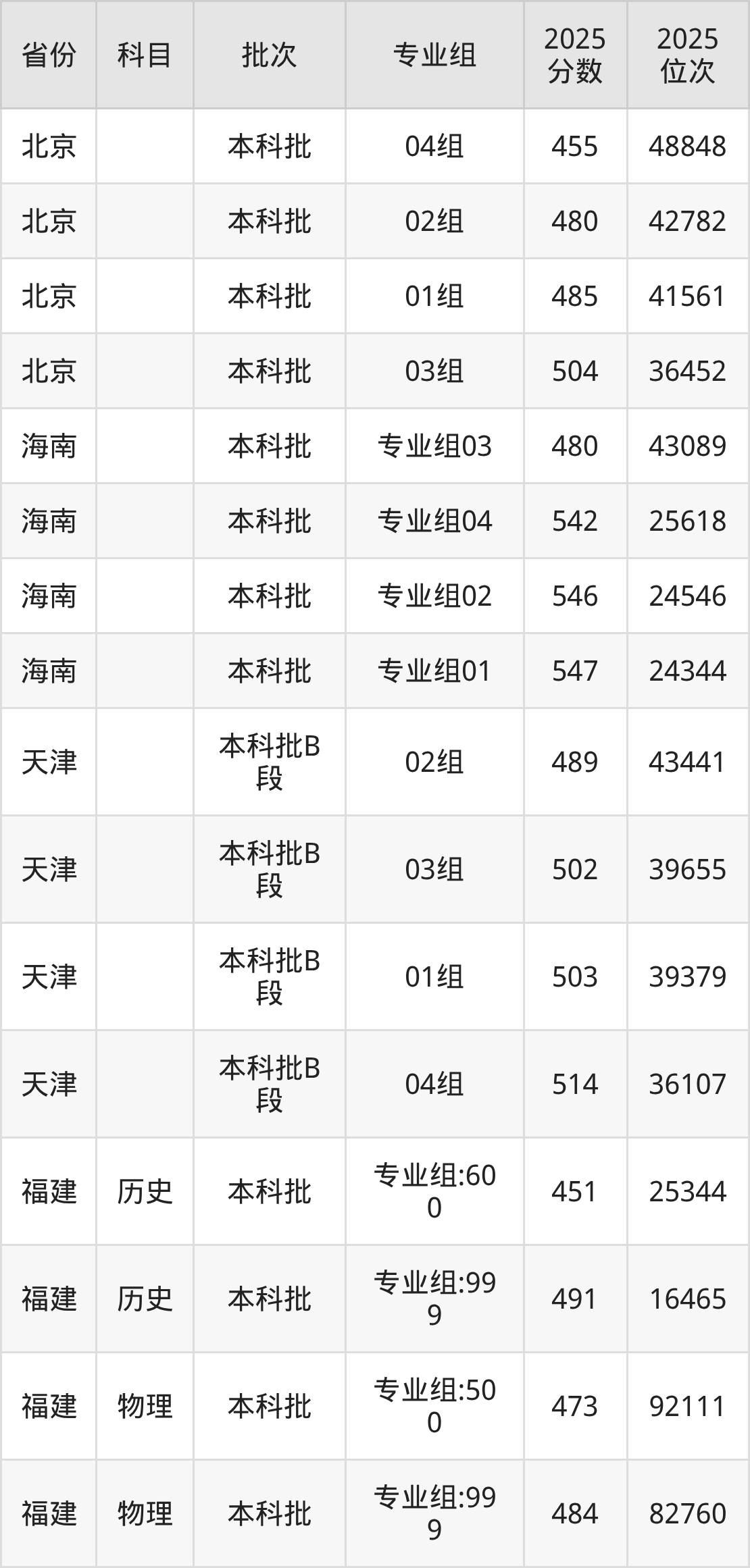 下面是2025年北京中医药大学东方学院全国录取分数线一览表,请查阅。