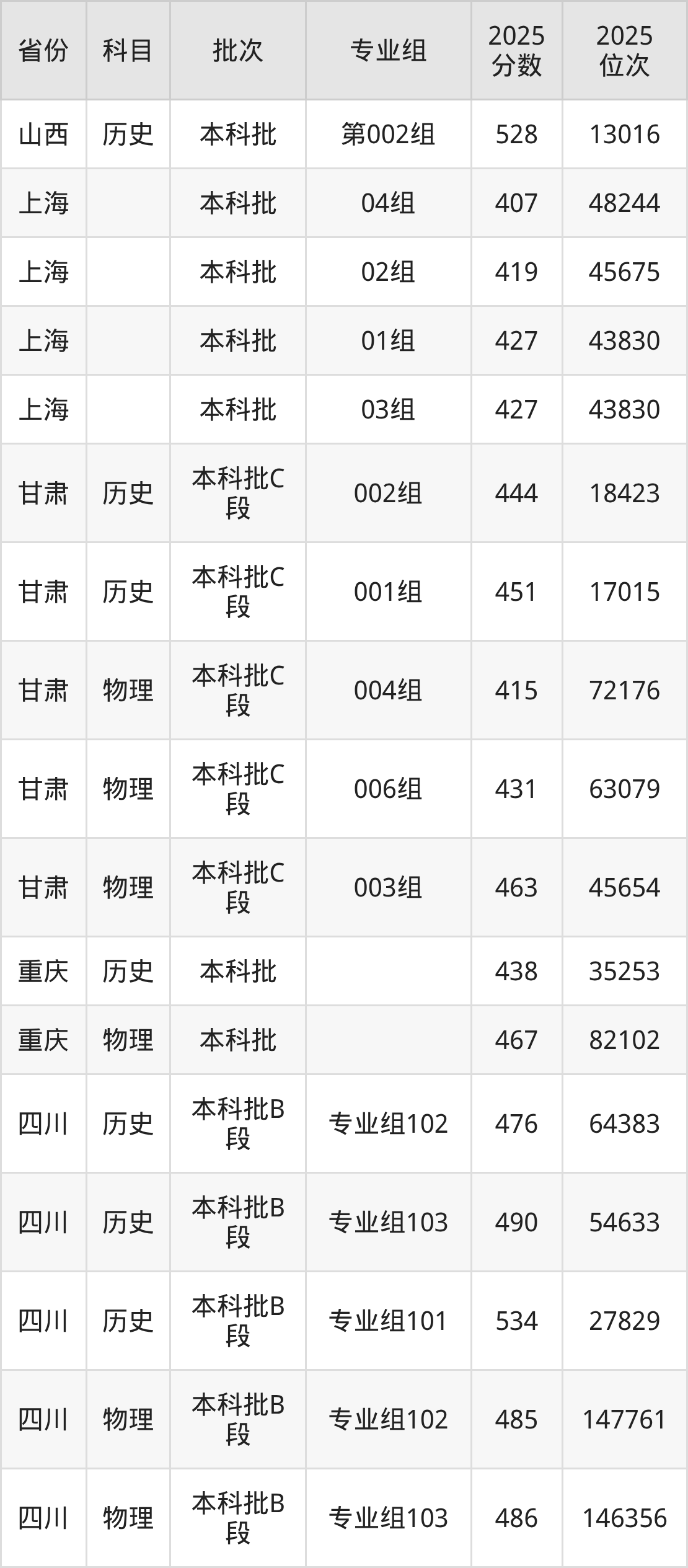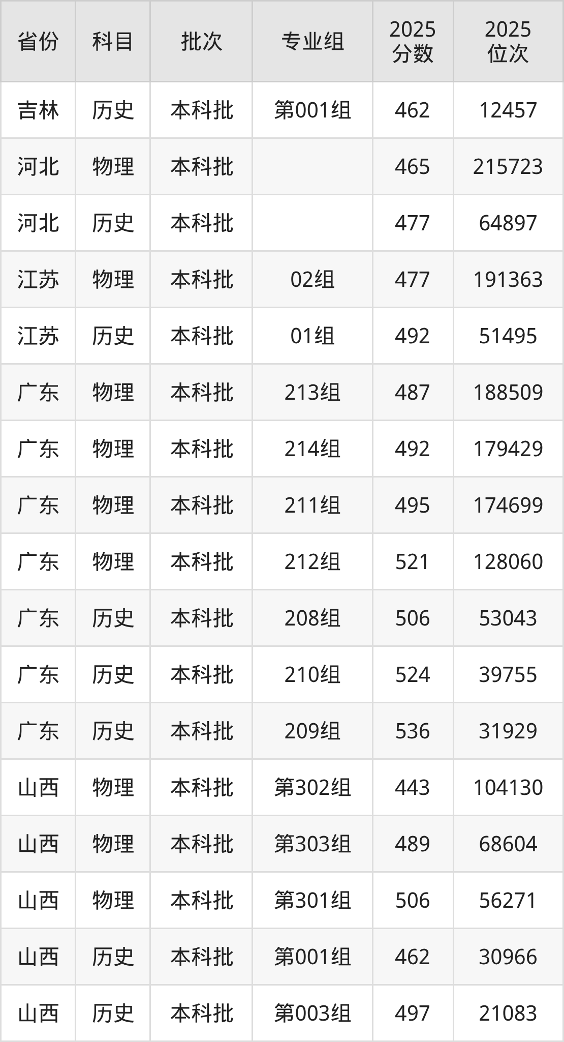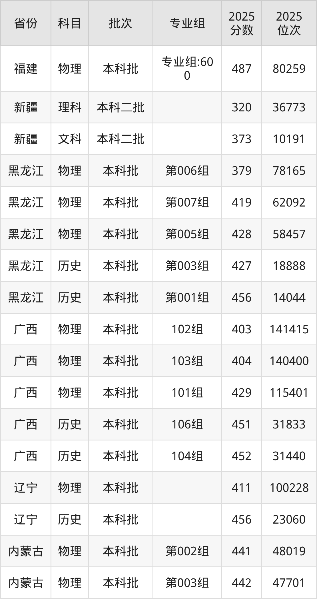 2025年投档录取最低分为456分,录取最低位次为23060名。