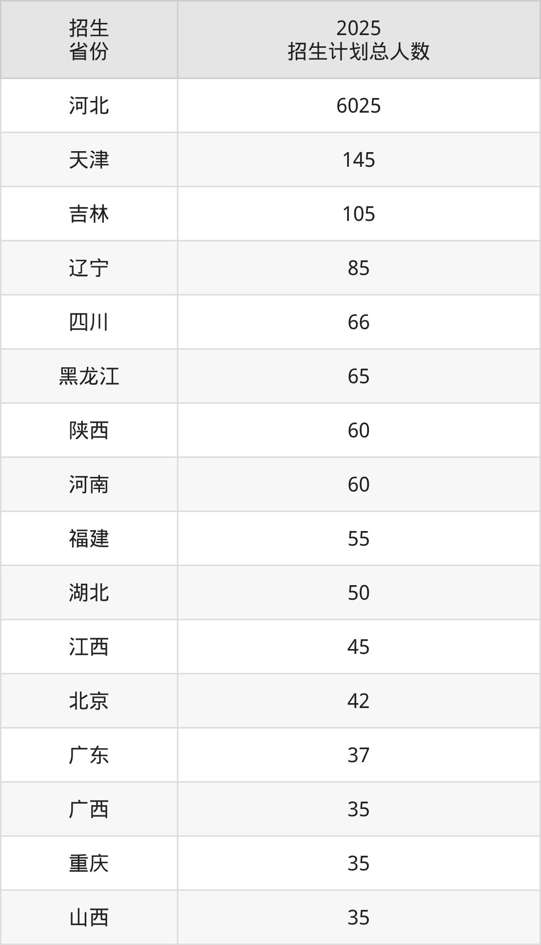 2025年北京中医药大学东方学院面向全国28个省市开展本科招生;招生专业共17个,招生人数共7003人。2025年在河北省招生计划总人数是6025人,其中,北京中医药大学东方学院在河北省招生人数最多的是中西医临床医学。北京中医药大学东方学院在各省具体招生人数情况如下表。