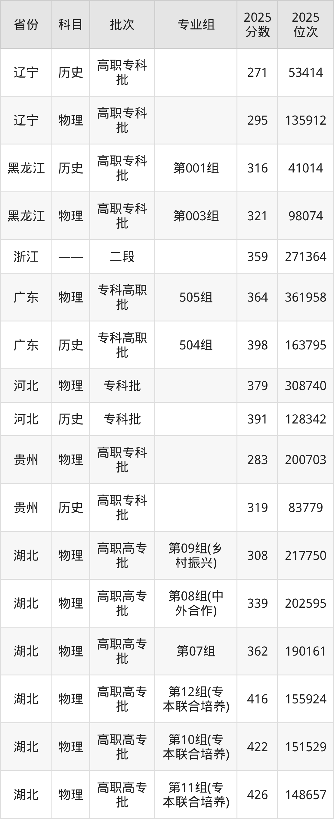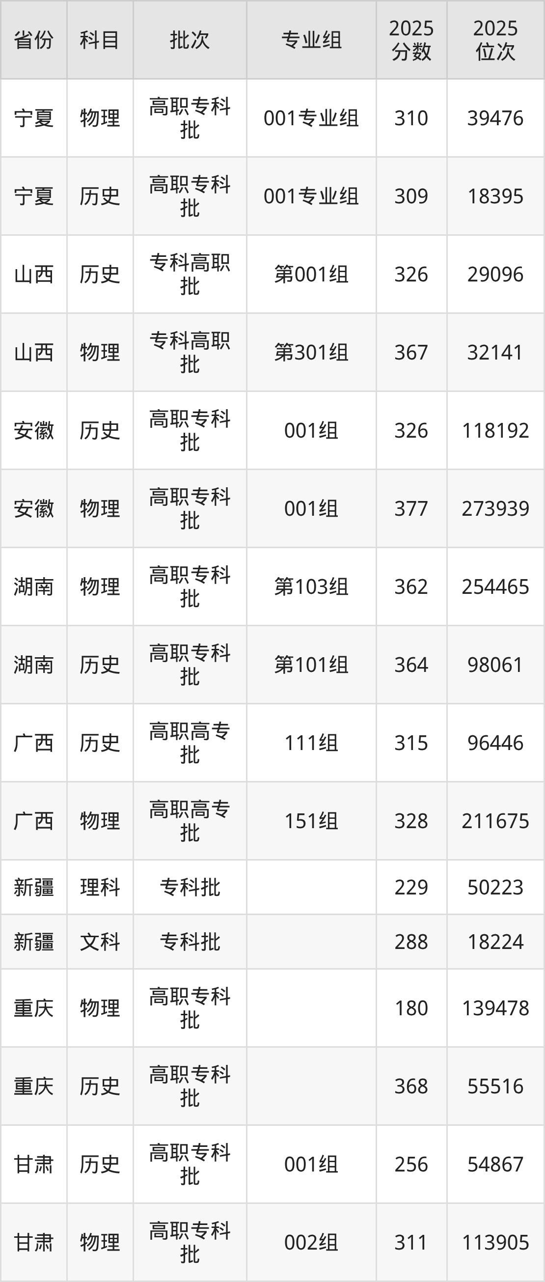 咸宁职业技术学院001组:2025年投档录取最低分为377分,录取最低位次为273939名。