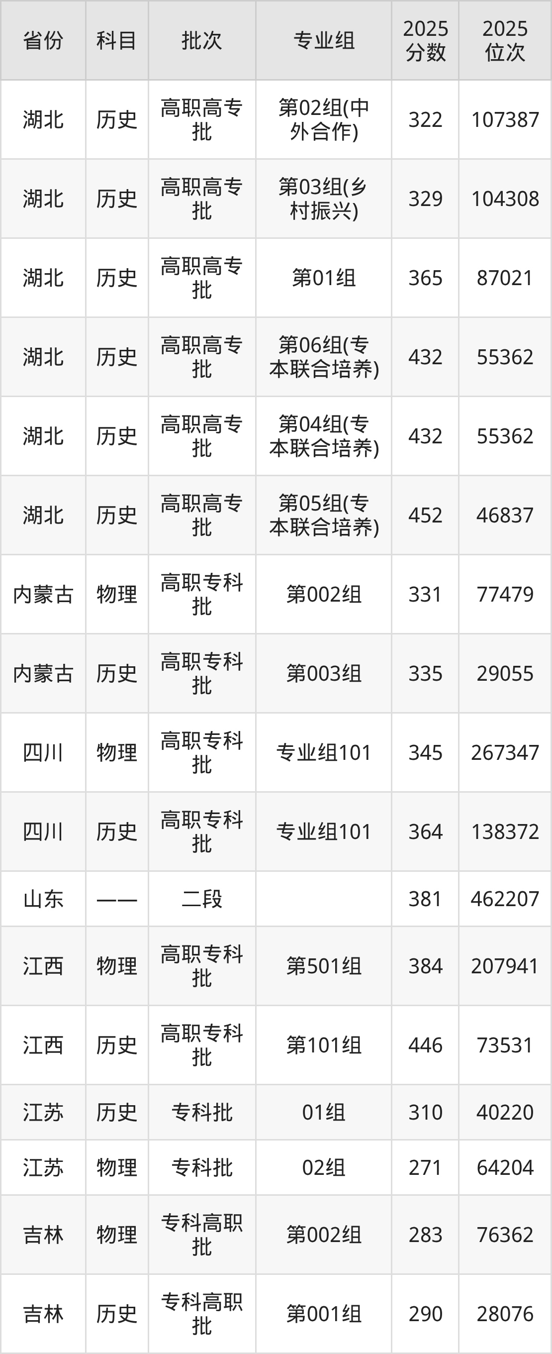 下面是2025年咸宁职业技术学院全国录取分数线一览表,请查阅。