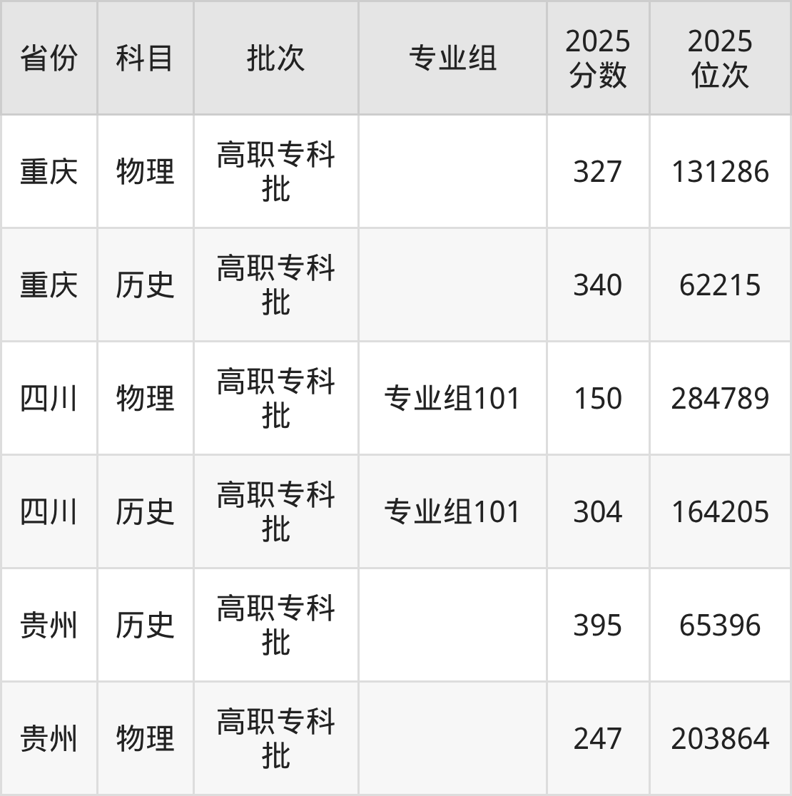 四川三河职业学院专业组101:2025年投档录取最低分为150分,录取最低位次为284789名。