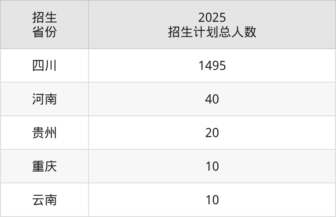 2025年四川三河职业学院面向全国5个省市开展专科招生;招生专业共28个,招生人数共1575人。2025年在四川省招生计划总人数是1495人,其中,四川三河职业学院在四川省招生人数最多的是动物医学。四川三河职业学院在各省具体招生人数情况如下表。