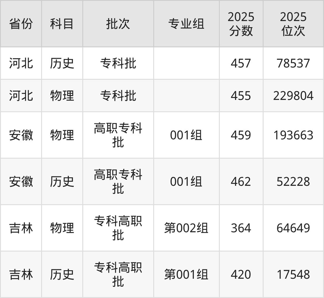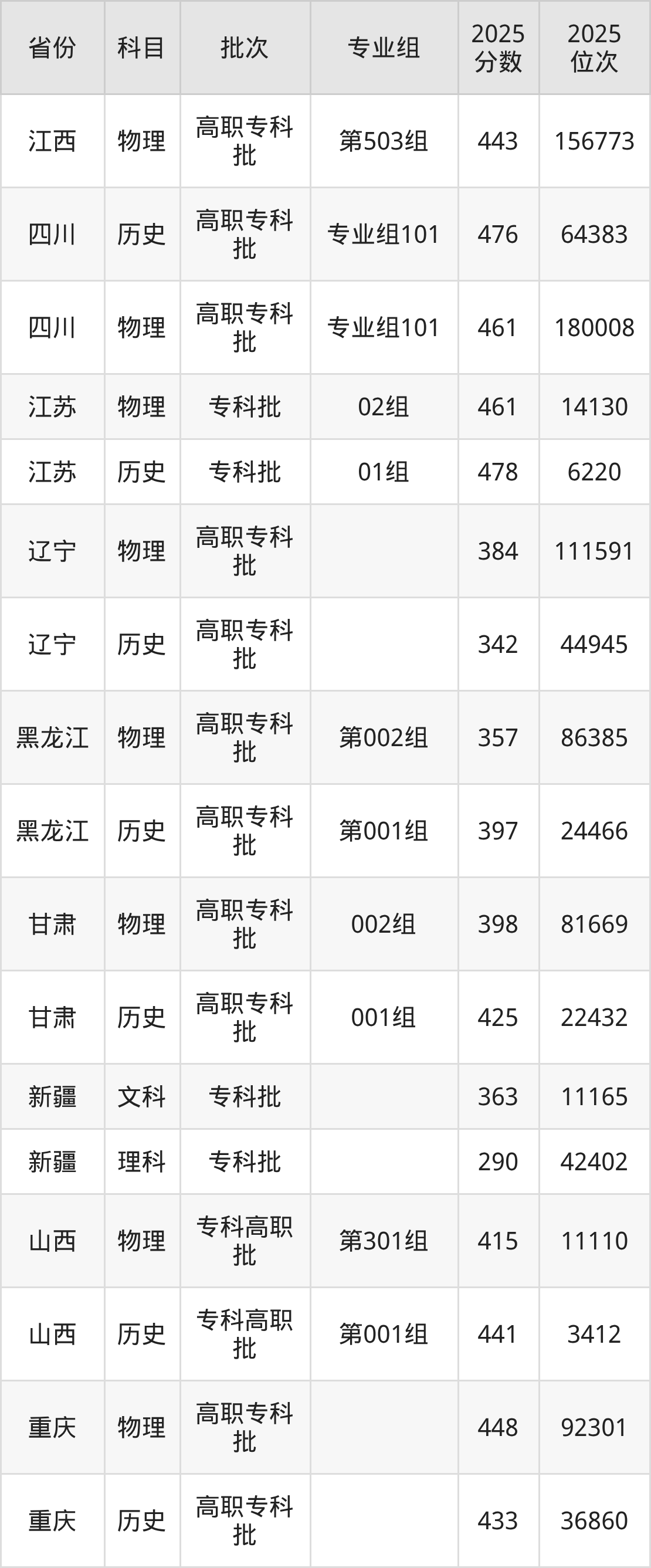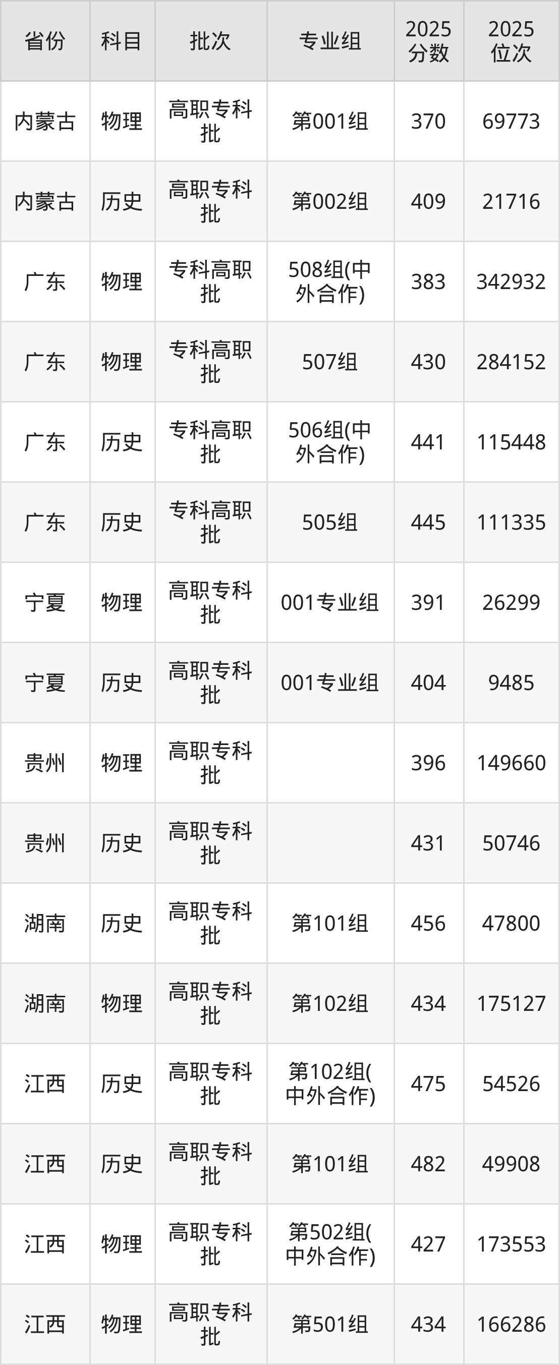 江西电力职业技术学院001专业组:2025年投档录取最低分为425分,录取最低位次为22432名。