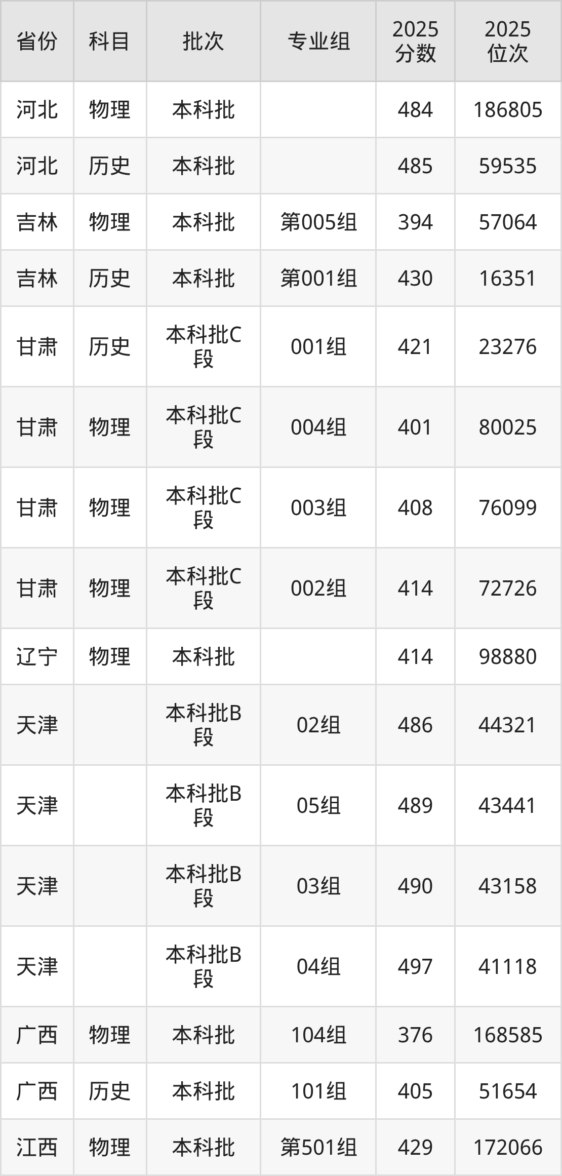 西安外事学院第008组:2025年投档录取最低分为407分,录取最低位次为59120名。