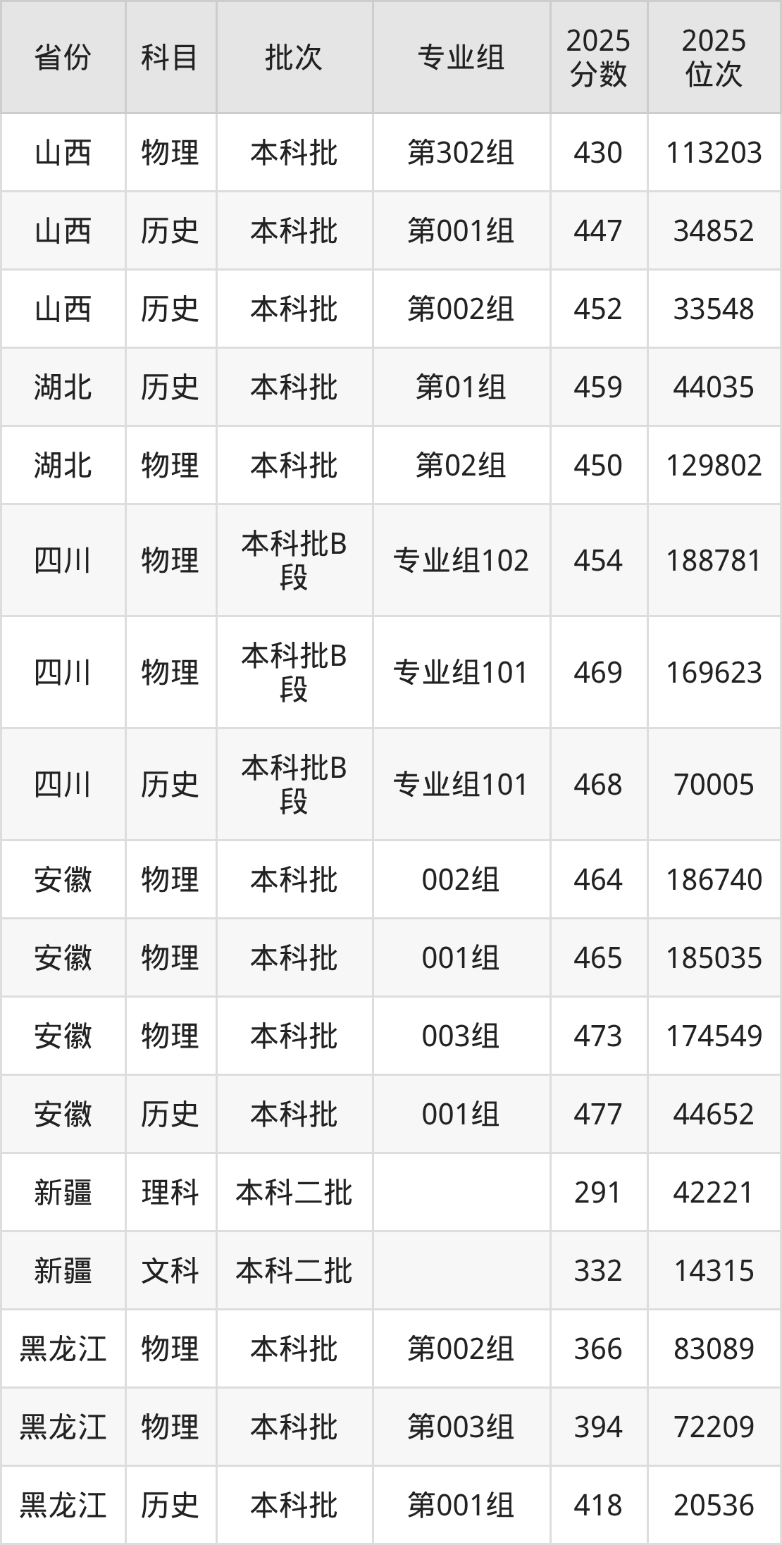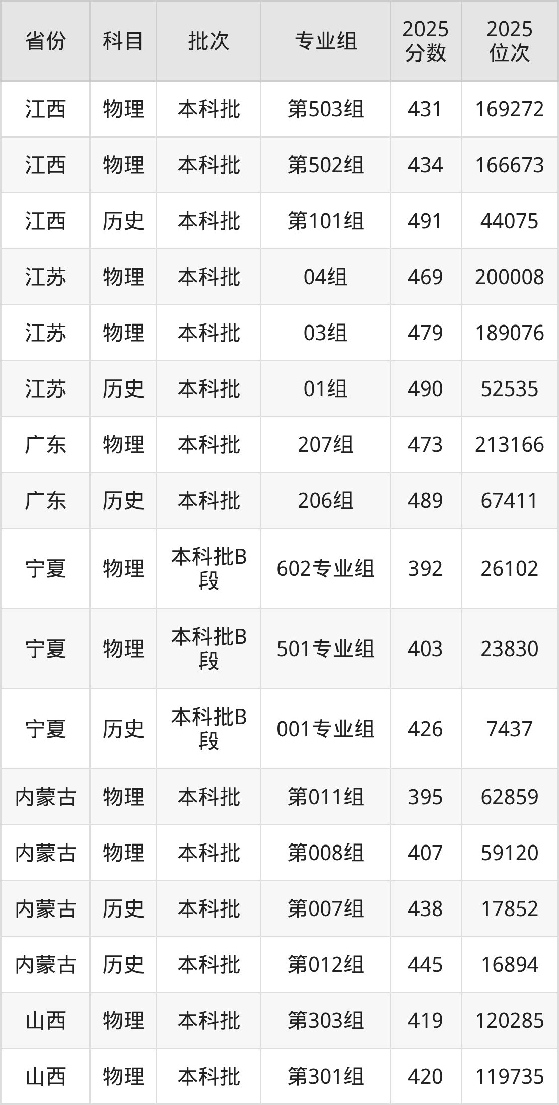 西安外事学院第303组:2025年投档录取最低分为419分,录取最低位次为120285名。
