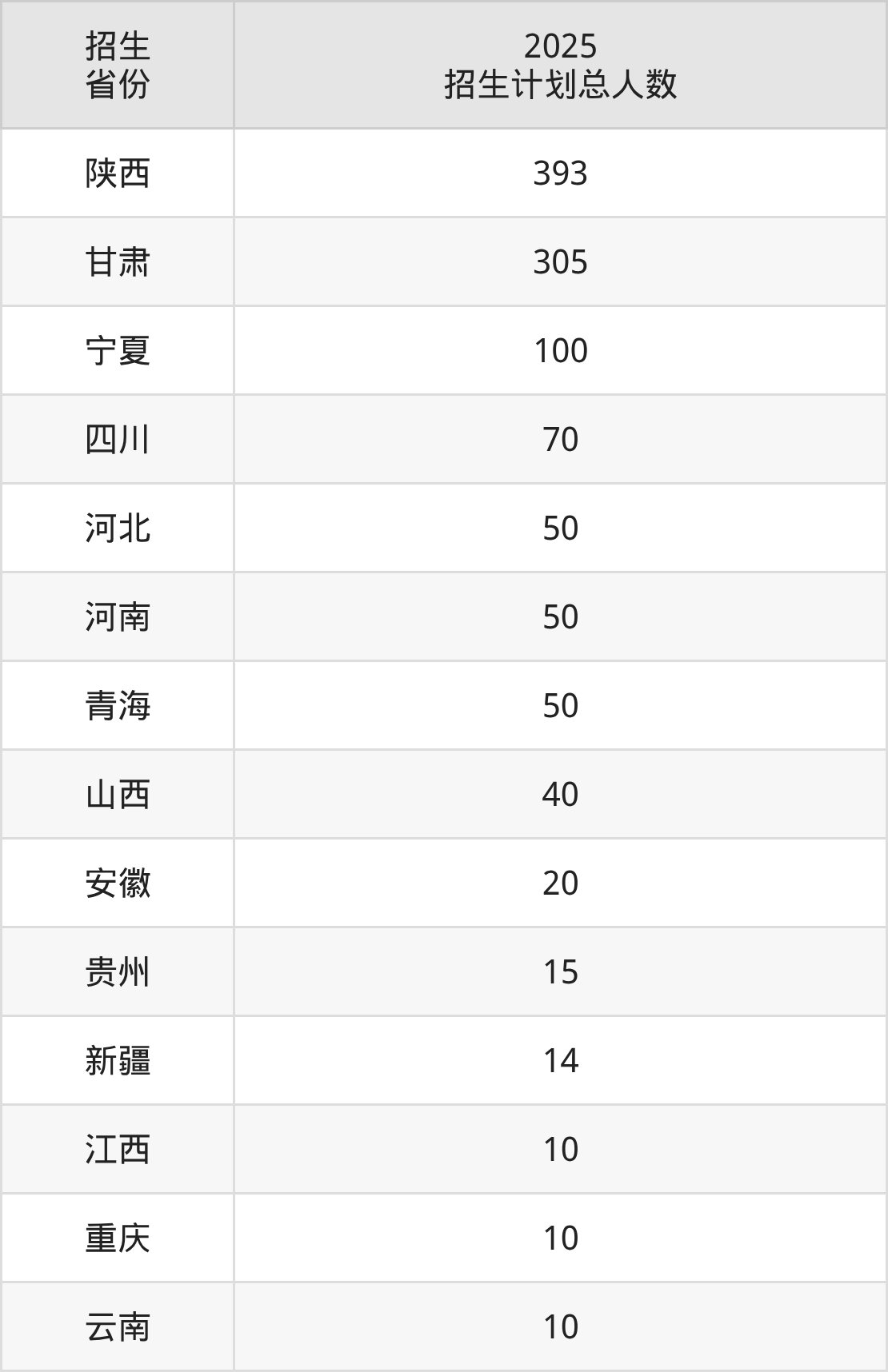 2025年安康职业技术学院面向全国14个省市开展专科招生;招生专业共33个,招生人数共1137人。2025年在陕西省招生计划总人数是393人,其中,安康职业技术学院在陕西省招生人数最多的是临床医学。安康职业技术学院在各省具体招生人数情况如下表。