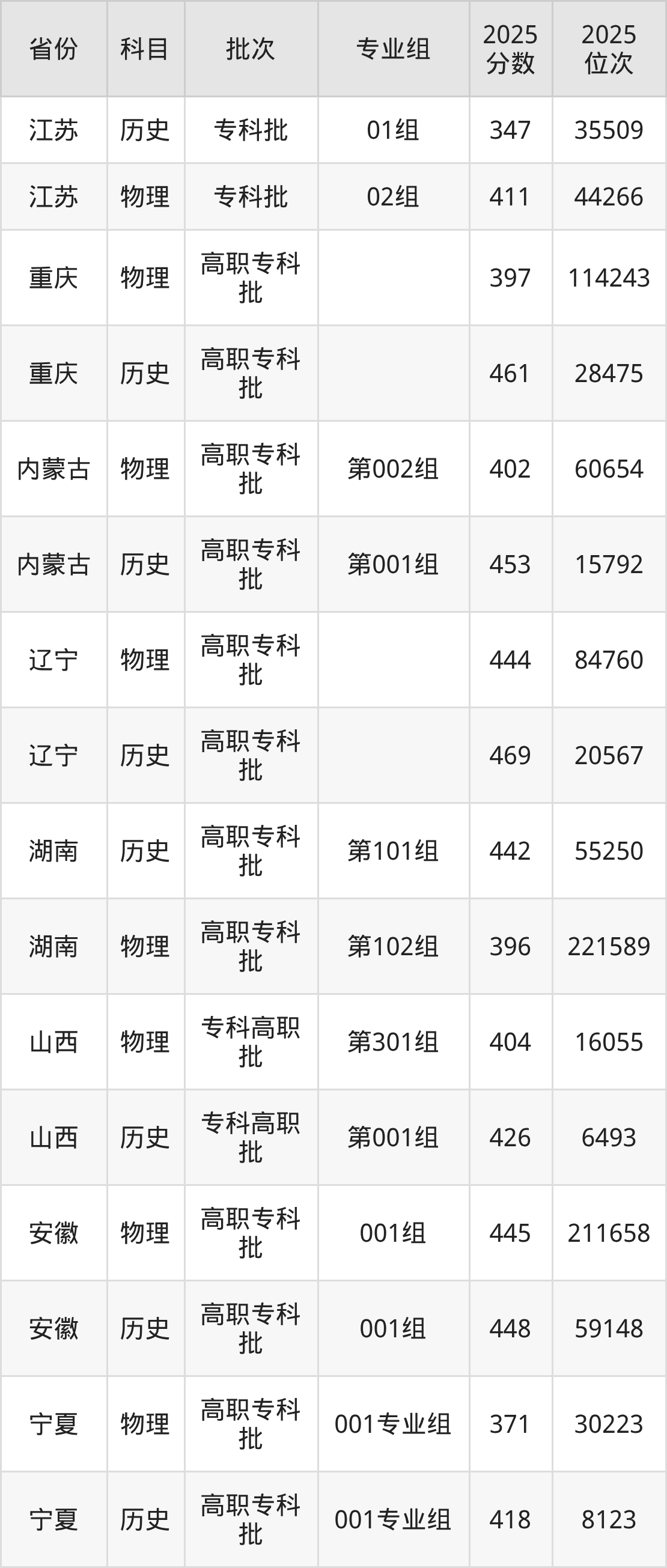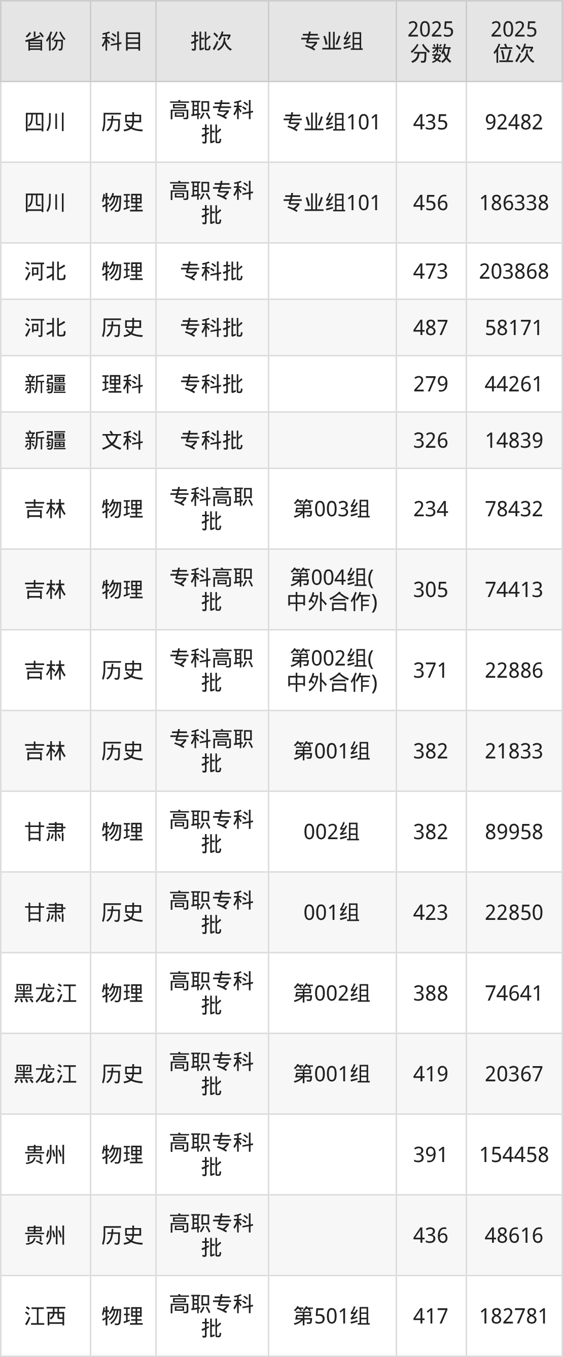 下面是2025年长春医学高等专科学校全国录取分数线一览表,请查阅。