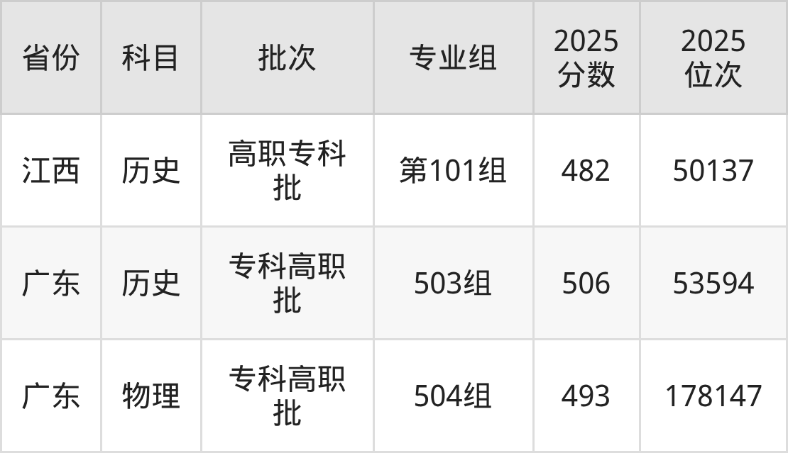长春医学高等专科学校504组:2025年投档录取最低分为493分,录取最低位次为178147名。