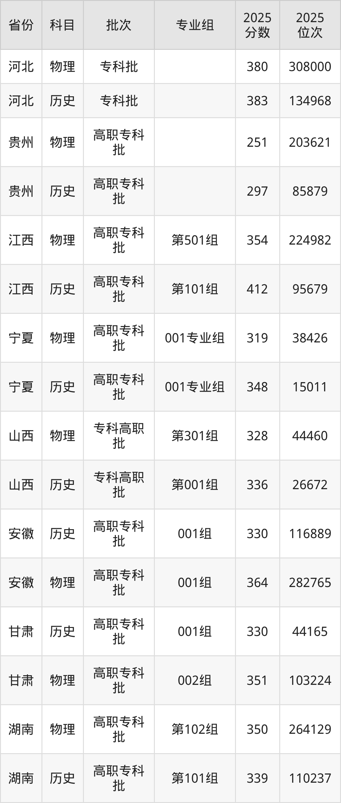 下面是2025年襄阳汽车职业技术学院全国录取分数线一览表,请查阅。