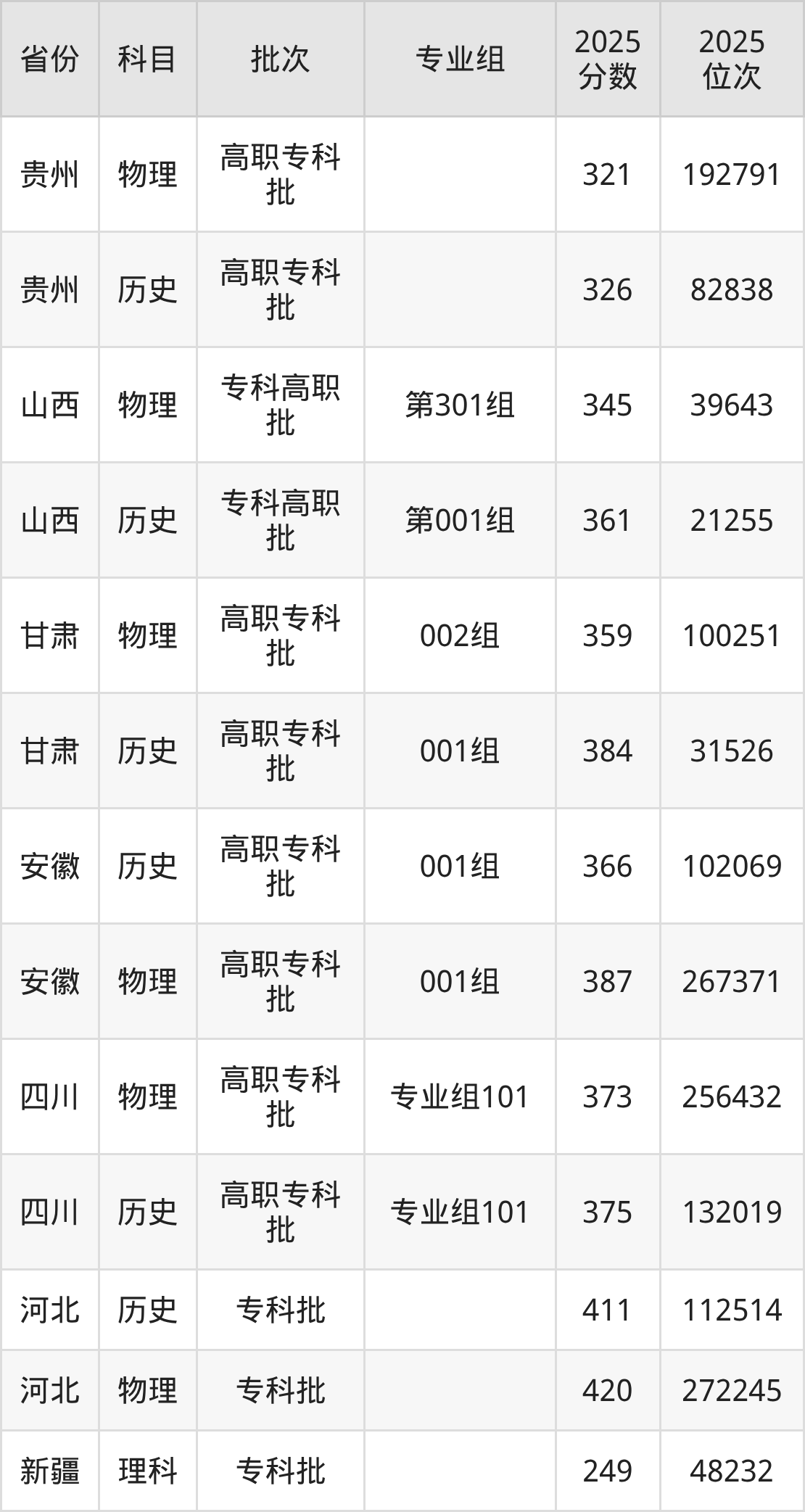 下面是2025年郑州职业技术学院全国录取分数线一览表,请查阅。