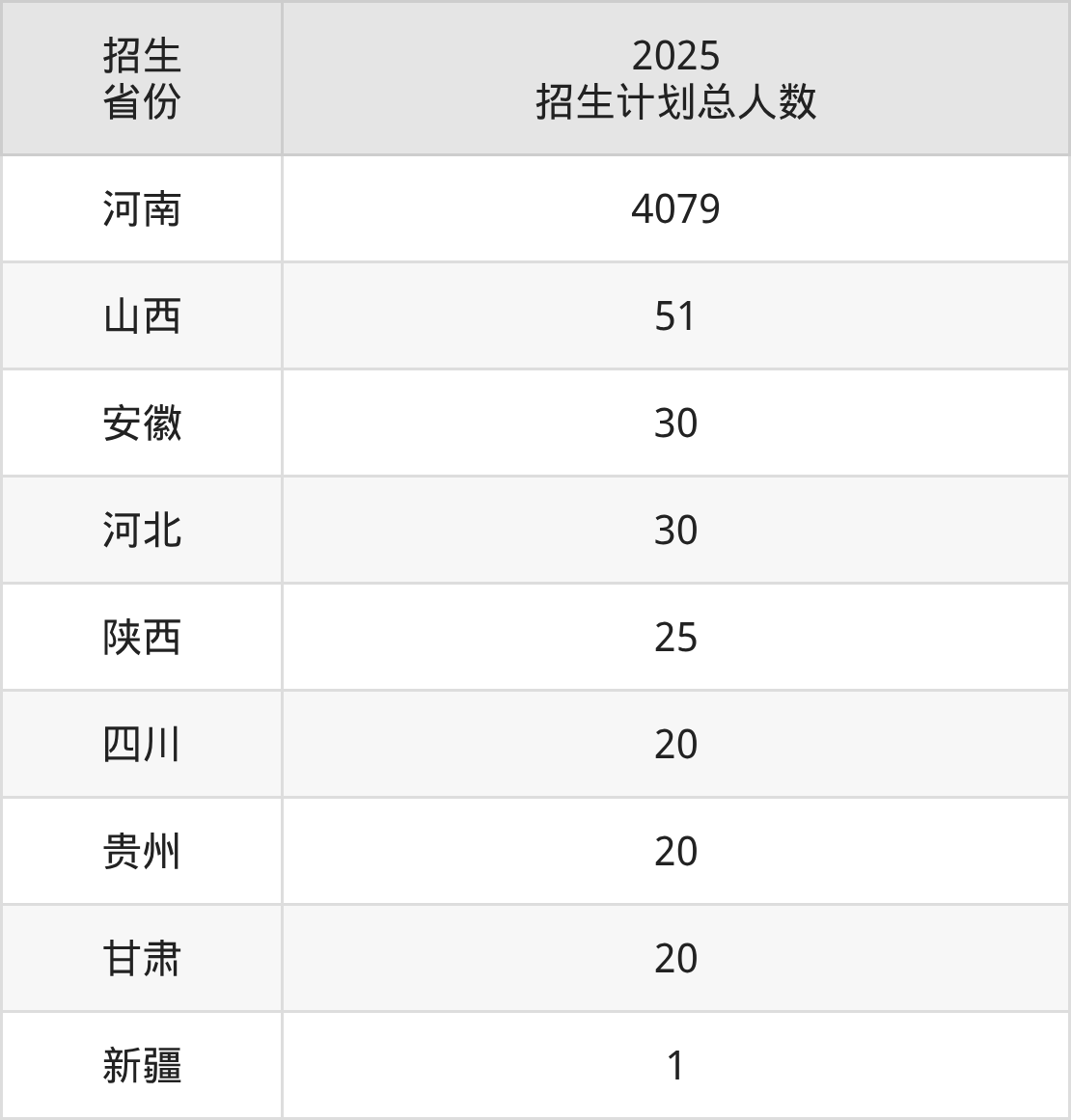 2025年郑州职业技术学院面向全国9个省市开展专科招生;招生专业共53个,招生人数共4276人。2025年在河南省招生计划总人数是4079人,其中,郑州职业技术学院在河南省招生人数最多的是电气自动化技术。郑州职业技术学院在各省具体招生人数情况如下表。