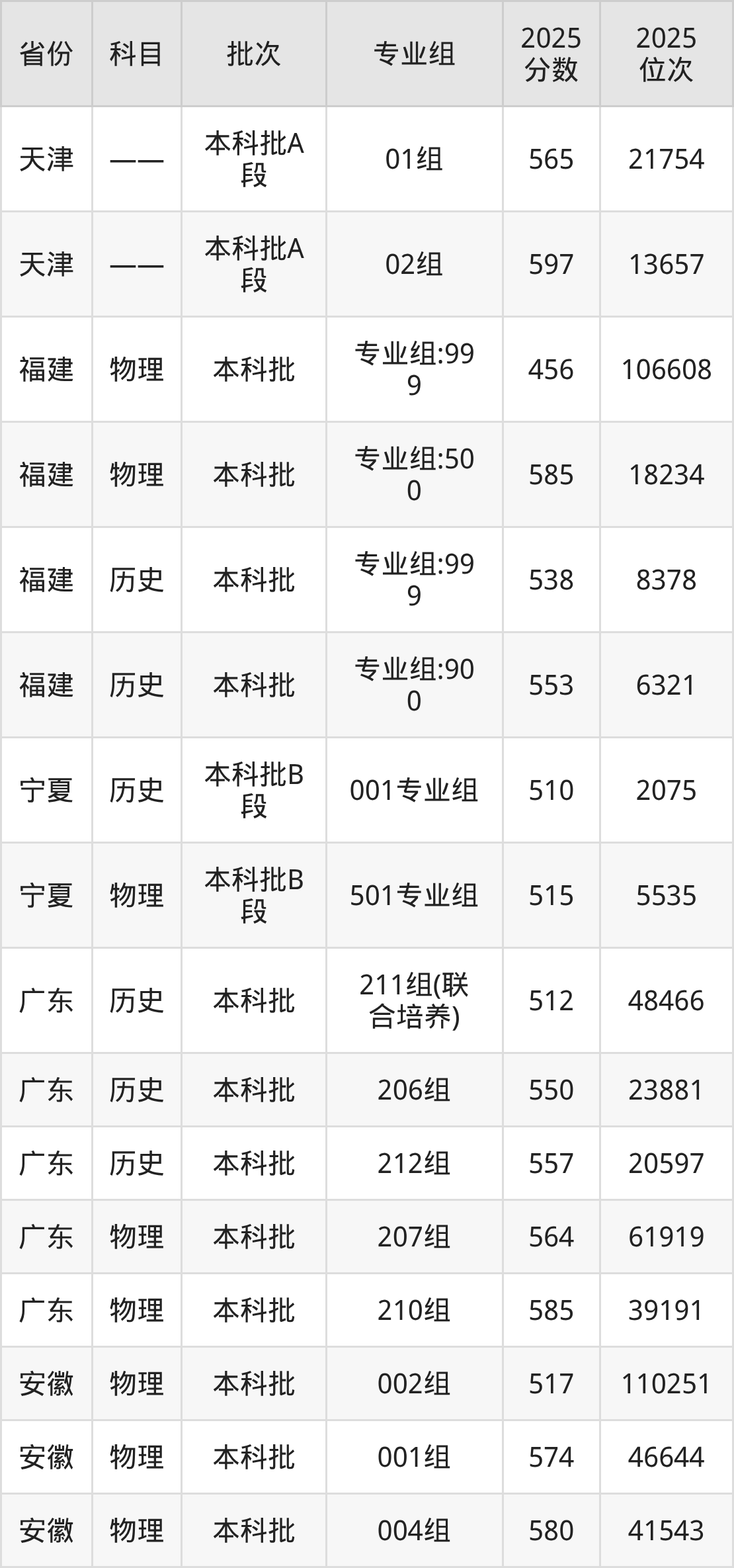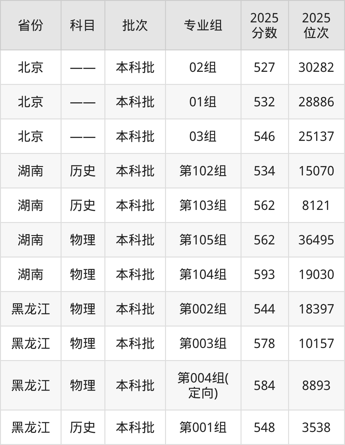 2025年投档录取最低分为533分,录取最低位次为31893名。