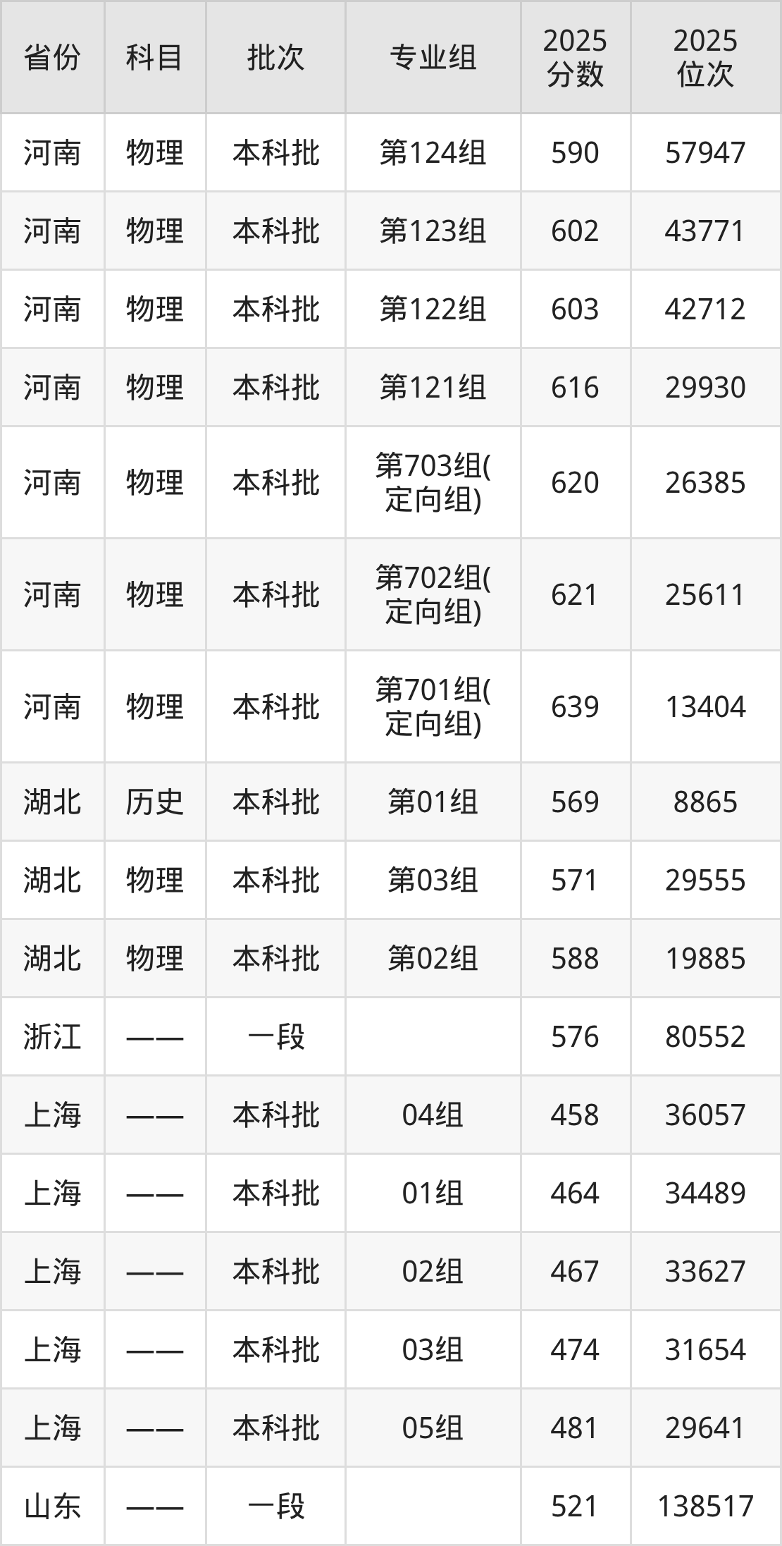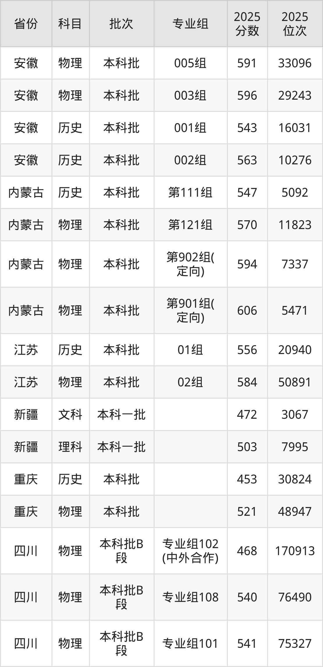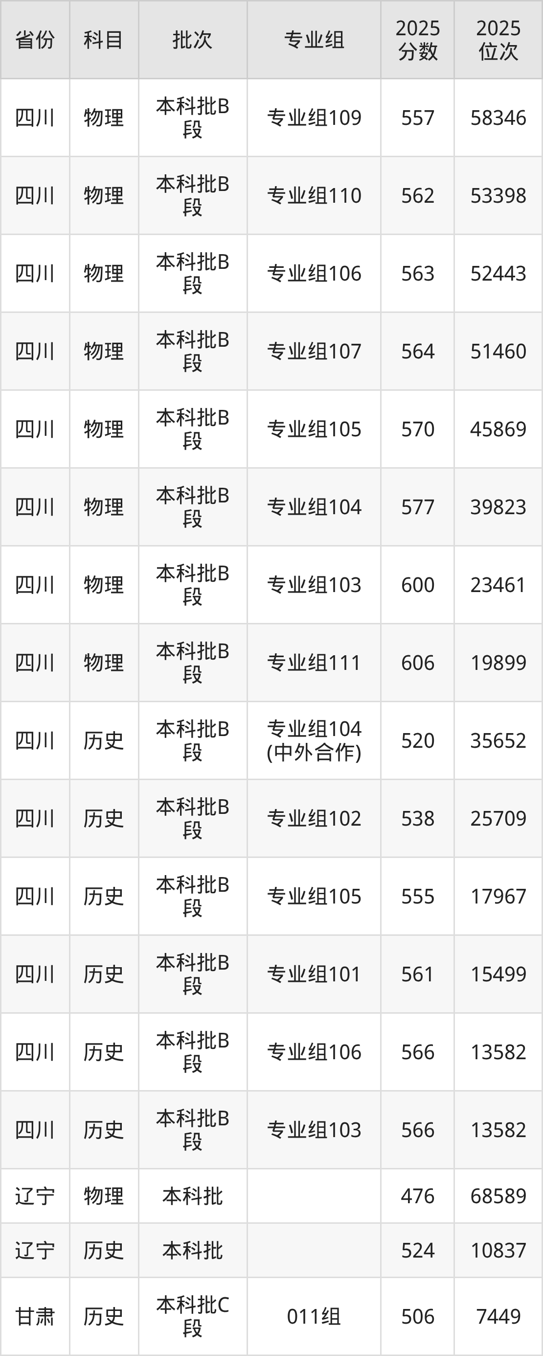 成都信息工程大学专业组102:2025年投档录取最低分为538分,录取最低位次为25709名。