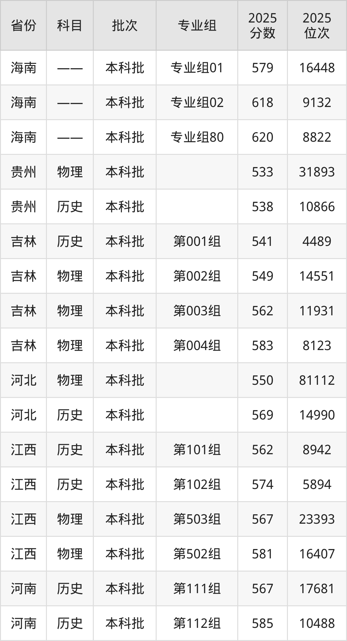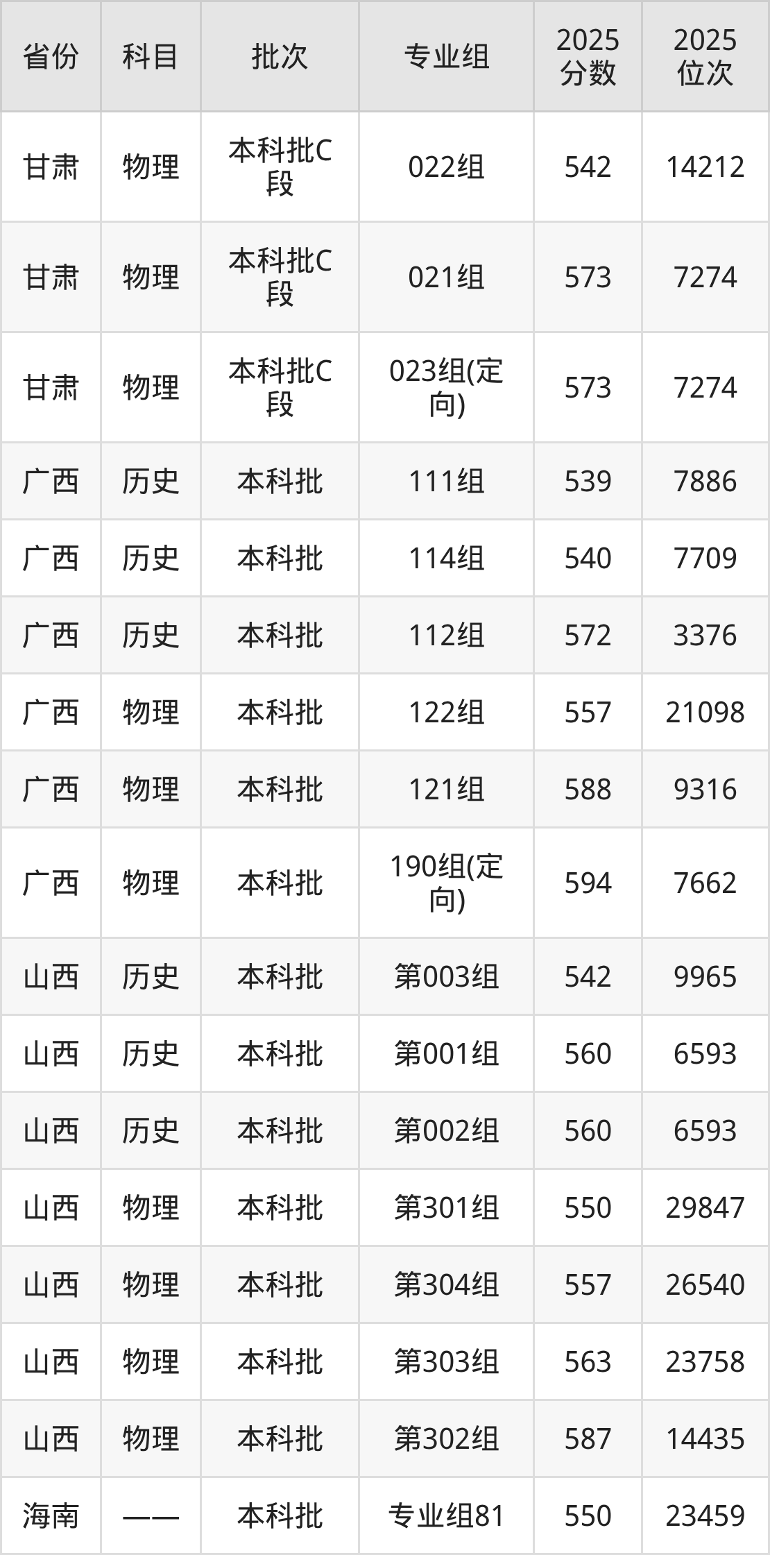 2025年投档录取最低分为550分,录取最低位次为81112名。