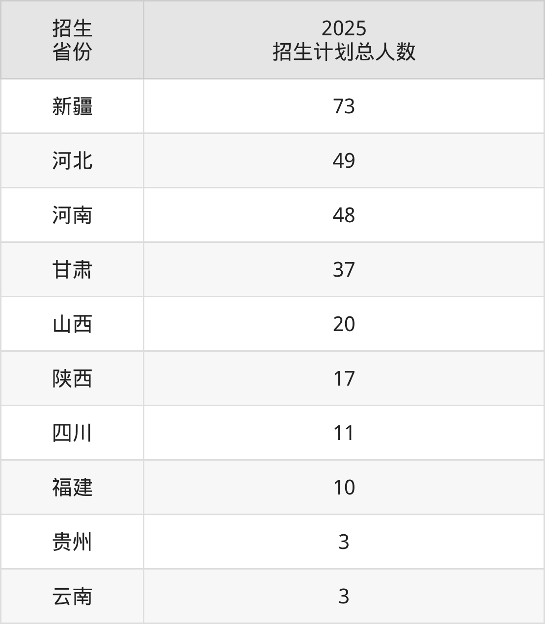 2025年新疆司法警官职业学院面向全国10个省市开展专科招生;招生专业共5个,招生人数共271人。