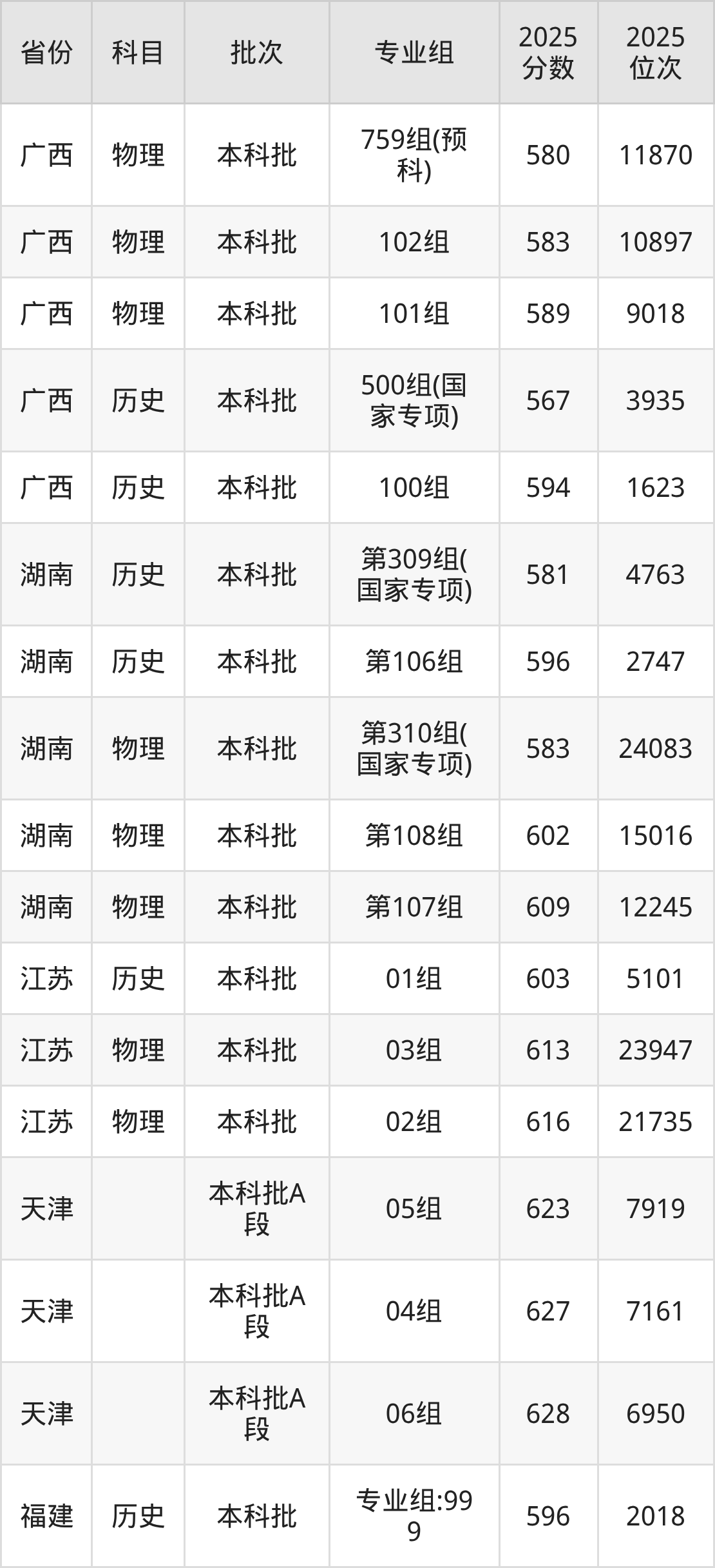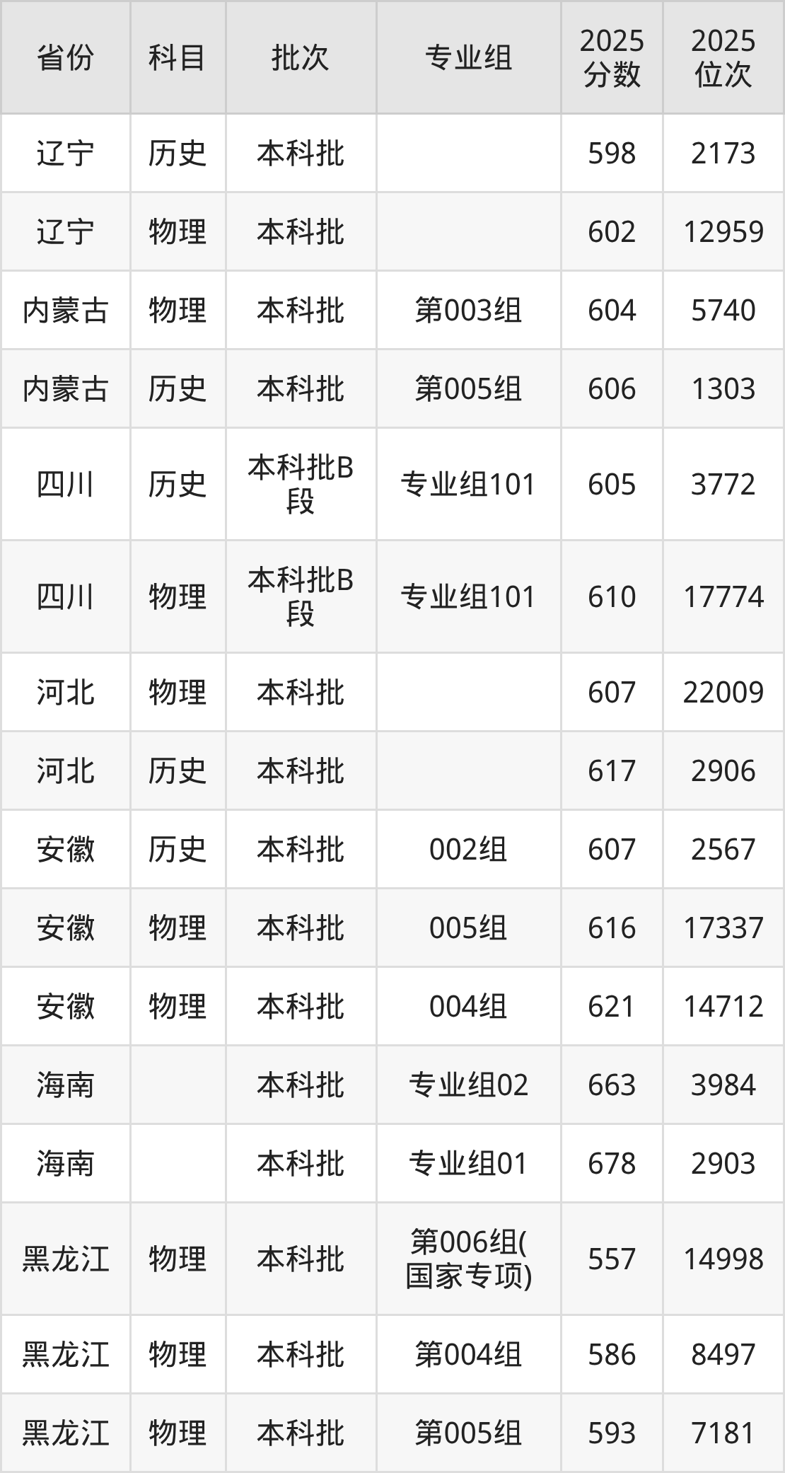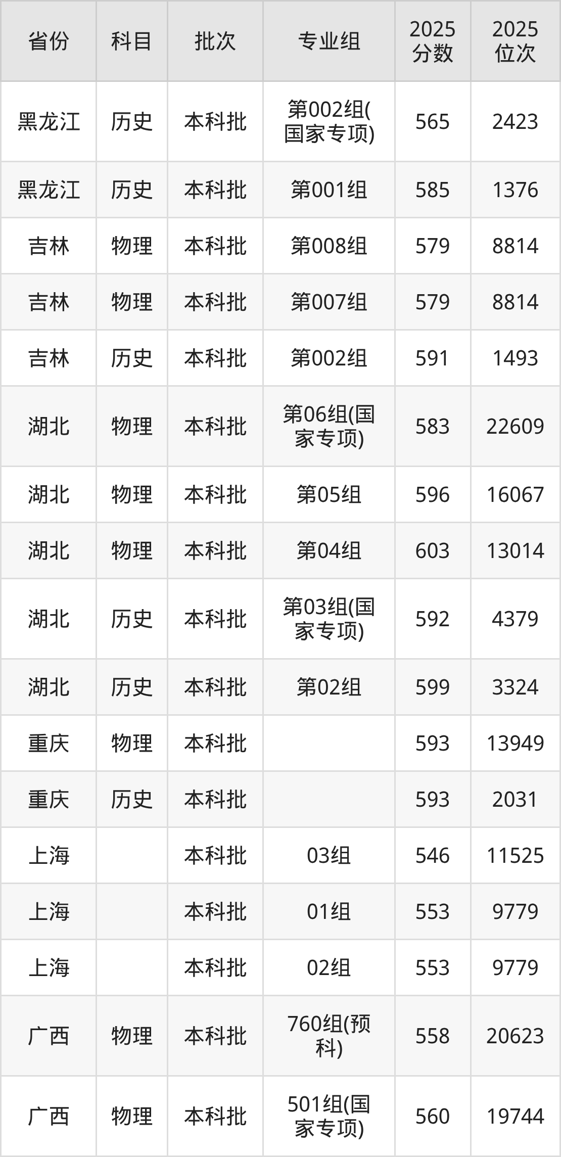 2025年投档录取最低分为593分,录取最低位次为2031名。