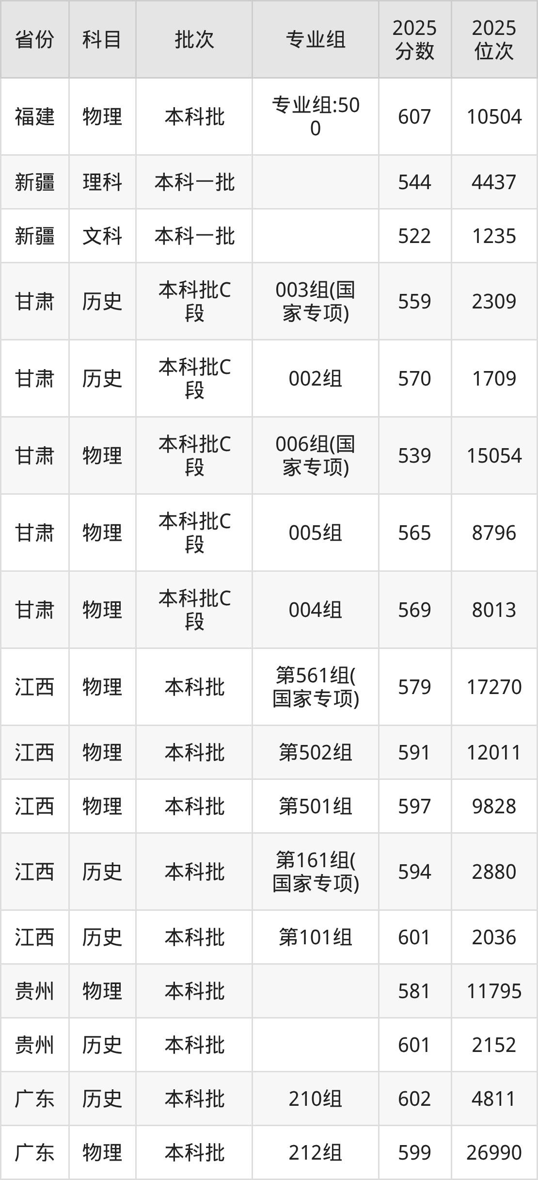 东华大学第06组(国家专项计划):2025年投档录取最低分为583分,录取最低位次为22609名。