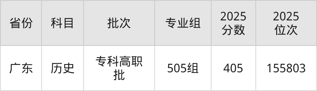 湖南化工职业技术学院505组:2025年投档录取最低分为405分,录取最低位次为155803名。
