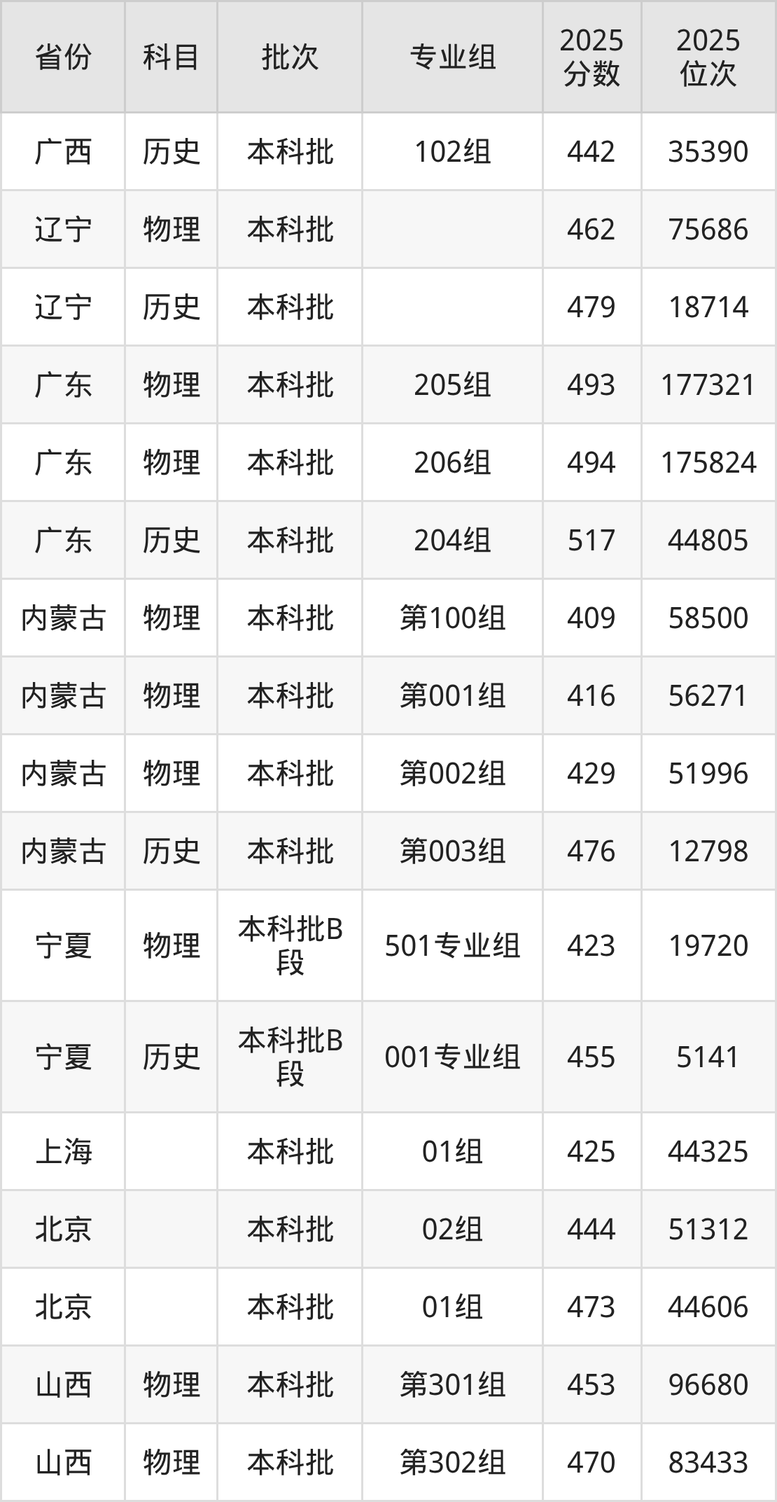 2025年投档录取最低分为462分,录取最低位次为75686名。
