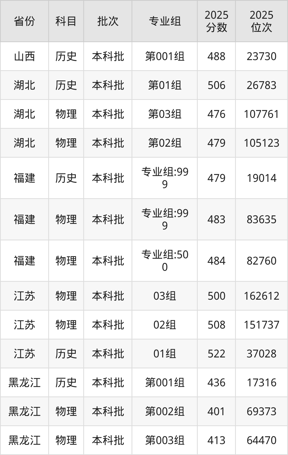 2025年投档录取最低分为479分,录取最低位次为18714名。
