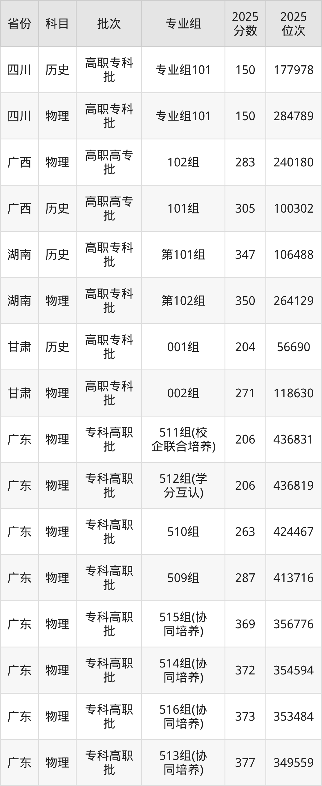 广东岭南职业技术学院第101组:2025年投档录取最低分为315分,录取最低位次为163757名。