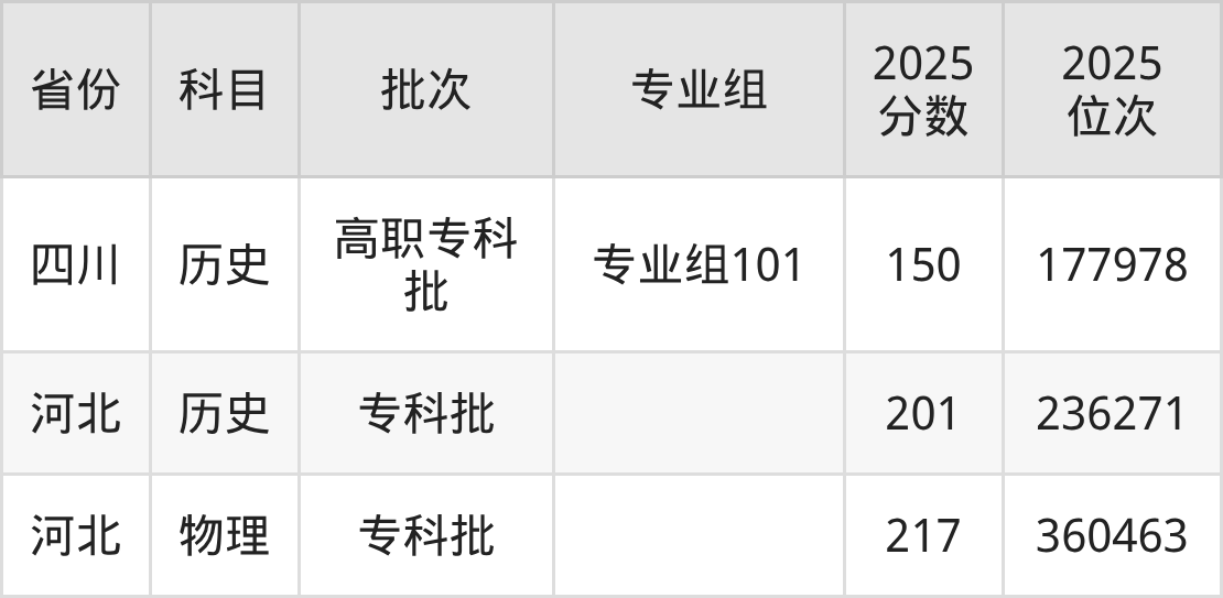 四川华新现代职业学院专业组101:2025年投档录取最低分为150分,录取最低位次为177978名。