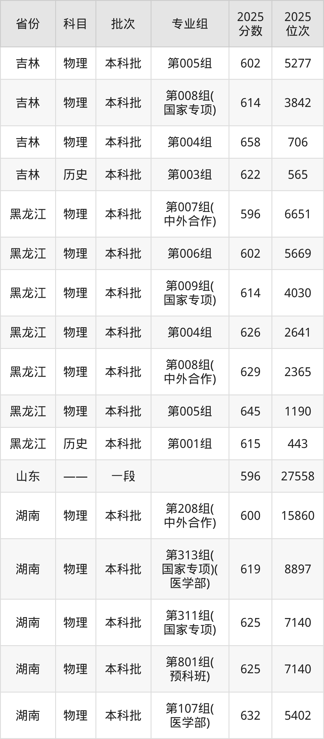 普通类本科物理类最低589分,本科历史类最低609分