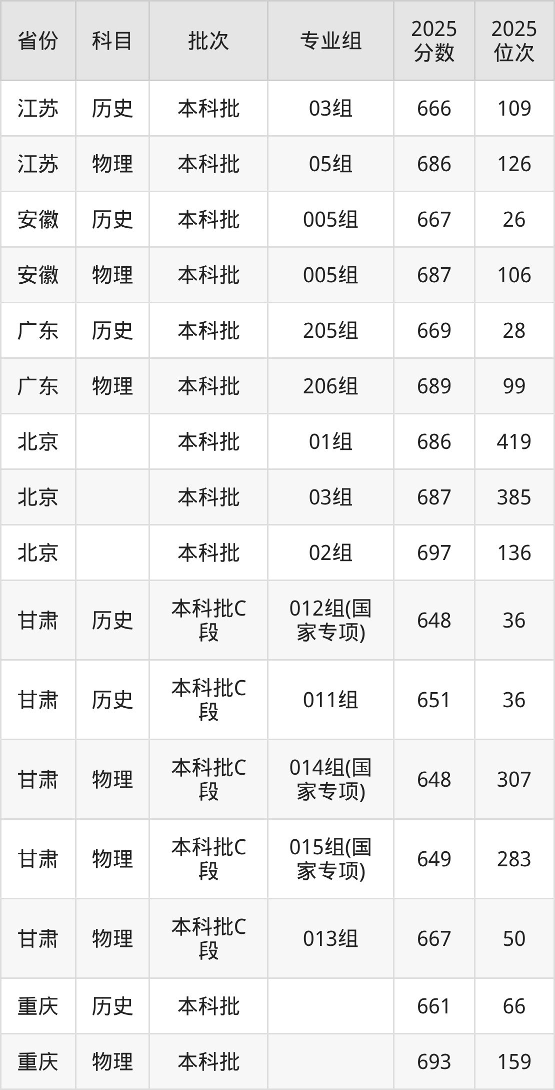 北京大学505组(国家专项):2025年投档录取最低分为643分,录取最低位次为748名。