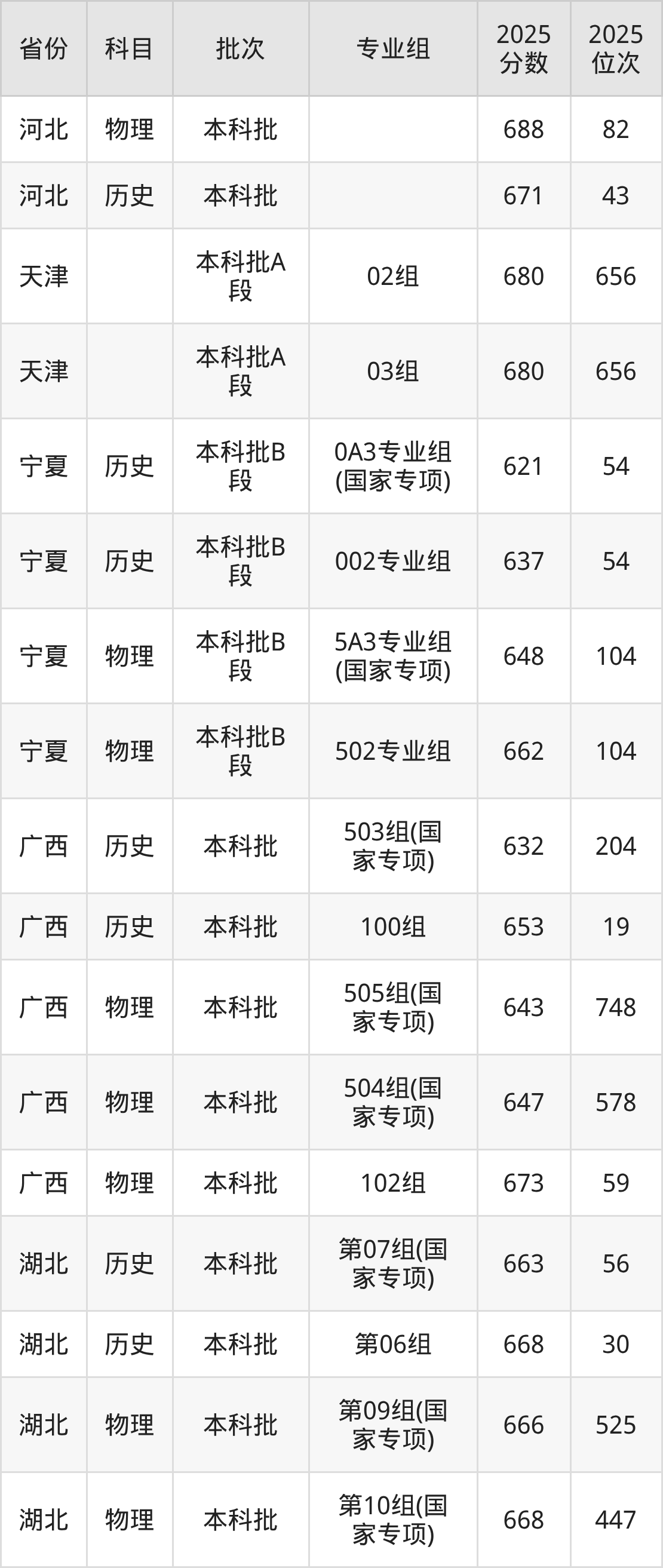 北京大学第10组(国家专项计划):2025年投档录取最低分为668分,录取最低位次为447名。