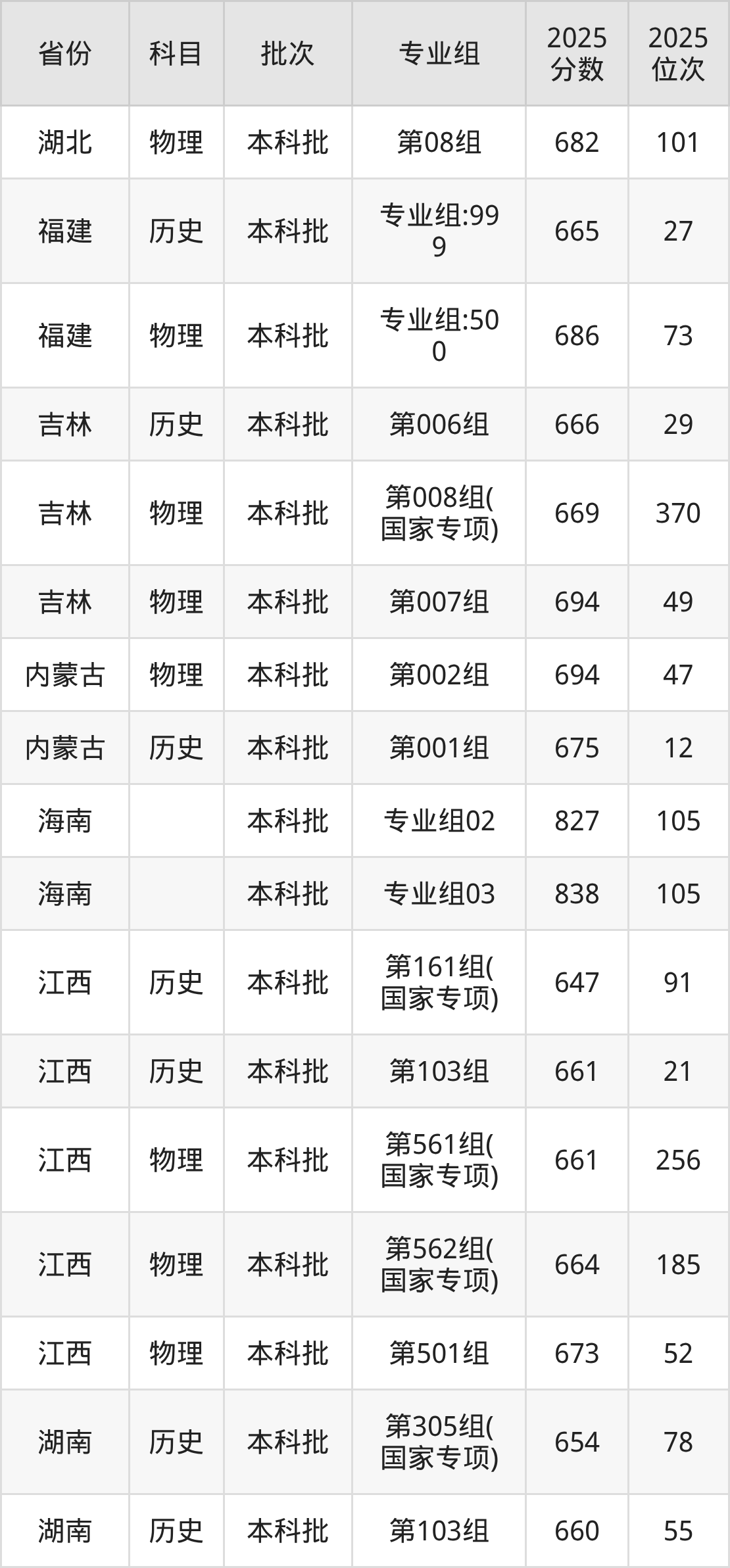 北京大学第008组(国家专项):2025年投档录取最低分为669分,录取最低位次为370名。