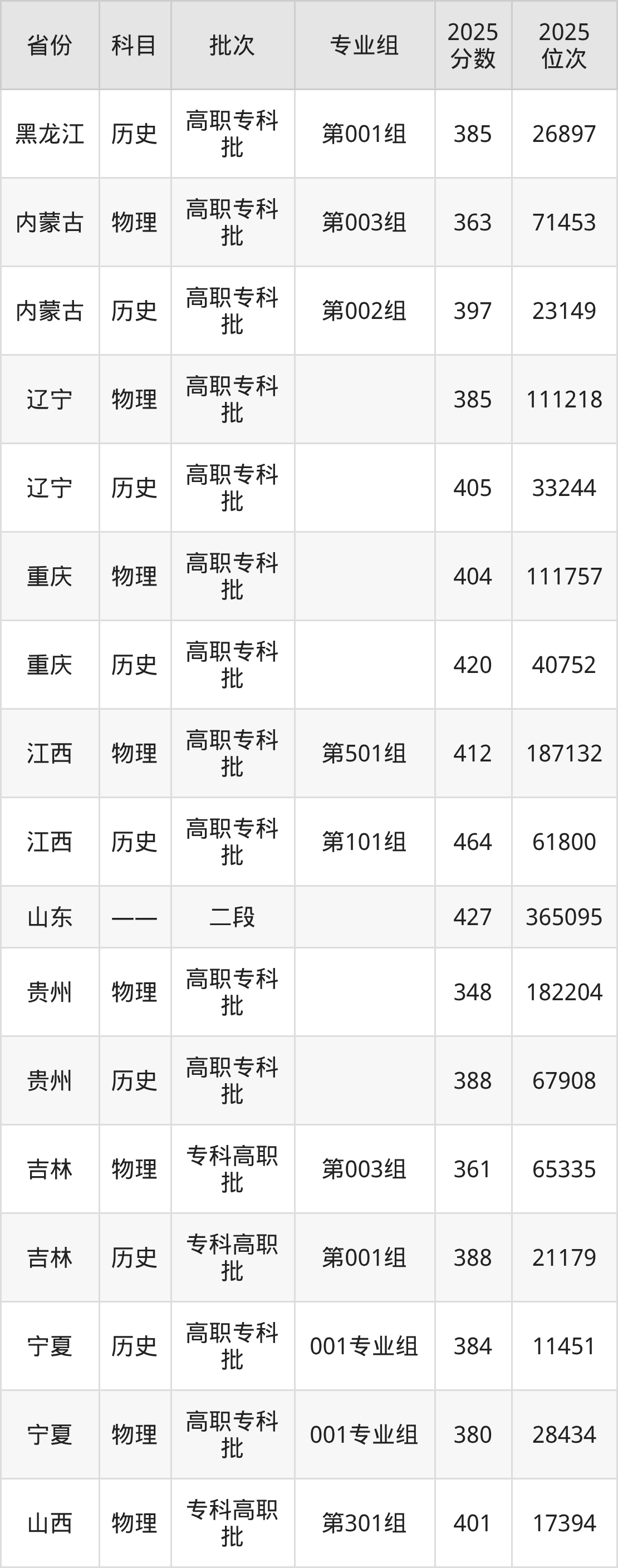 2025年投档录取最低分为385分,录取最低位次为111218名。
