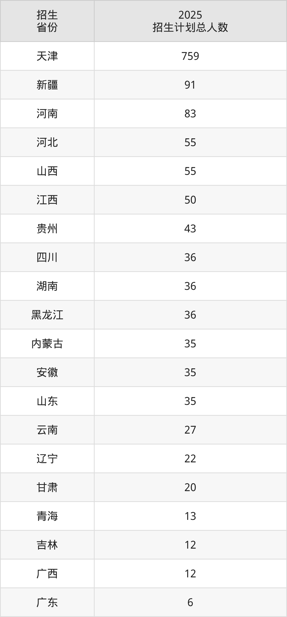 2025年天津轻工职业技术学院面向全国27个省市开展专科招生;招生专业共32个,招生人数共1475人。2025年在天津市招生计划总人数是759人,其中,天津轻工职业技术学院在天津市招生人数最多的是电气自动化技术。天津轻工职业技术学院在各省具体招生人数情况如下表。