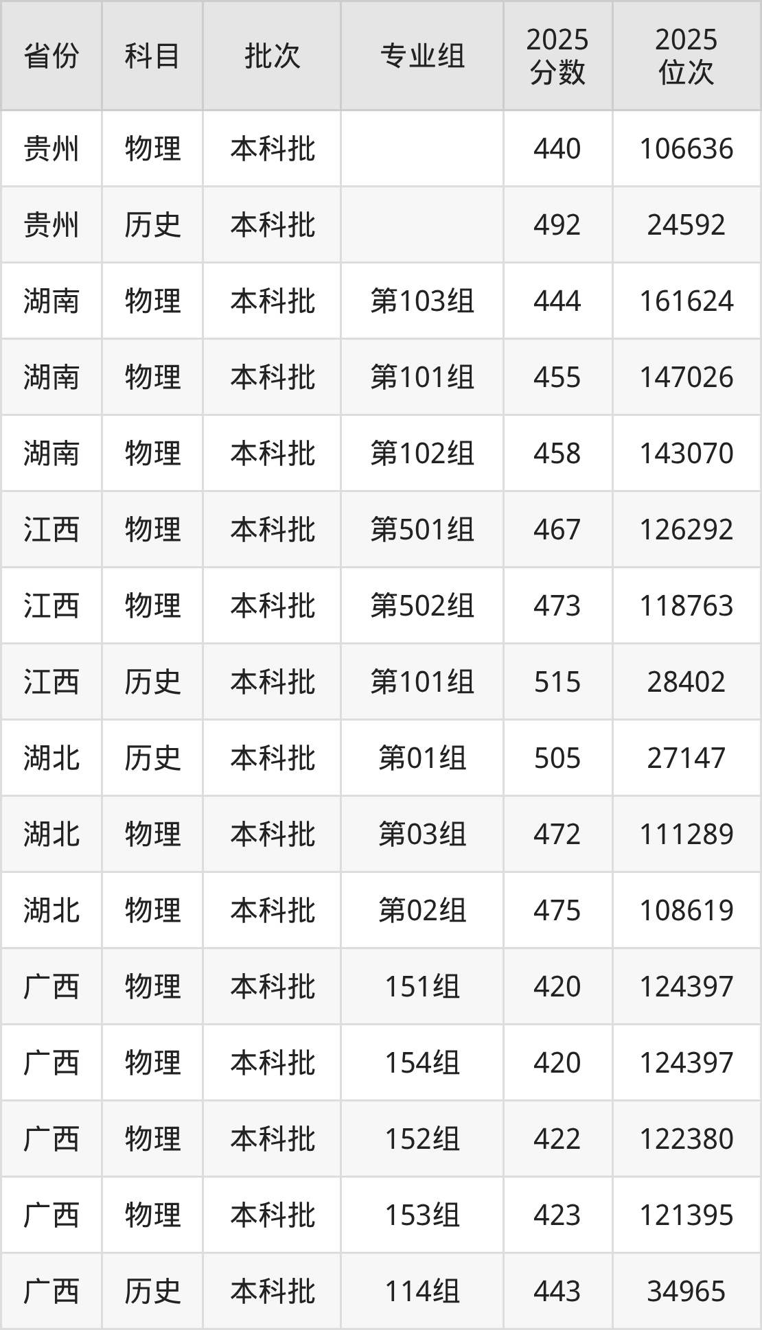 2025年在本科物理类进行招生,各专业组分数线详情如下: