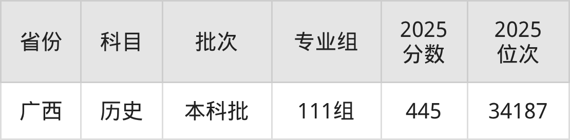 广西职业师范学院111组:2025年投档录取最低分为445分,录取最低位次为34187名。