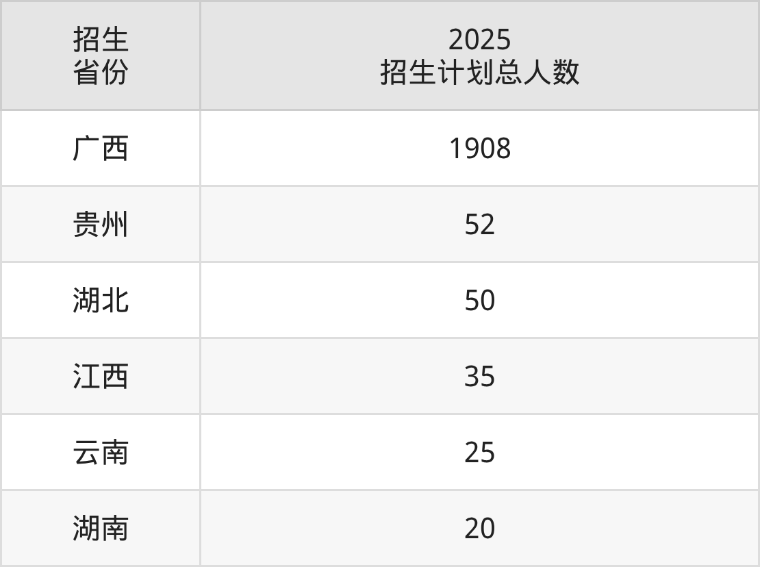 2025年广西职业师范学院面向全国6个省市开展本科招生;招生专业共31个,招生人数共1890人。