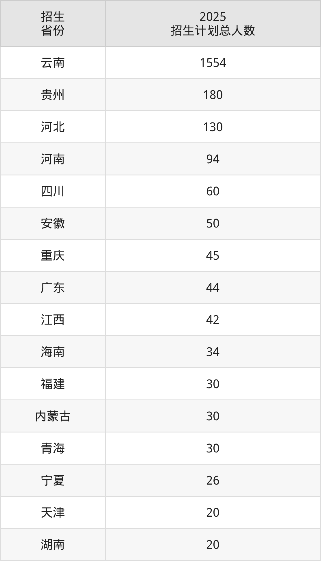 2025年云南理工职业学院面向全国23个省市开展专科招生;招生专业共34个,招生人数共2483人。2025年在云南省招生计划总人数是1554人,其中,云南理工职业学院在云南省招生人数最多的是新能源汽车技术。云南理工职业学院在各省具体招生人数情况如下表。