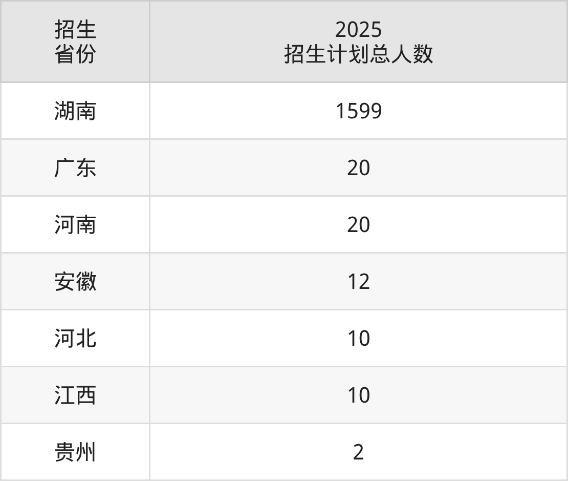 2025年岳阳现代服务职业学院面向全国7个省市开展专科招生;招生专业共24个,招生人数共1673人。2025年在湖南省招生计划总人数是1599人,其中,岳阳现代服务职业学院在湖南省招生人数最多的是电子产品检测技术。岳阳现代服务职业学院在各省具体招生人数情况如下表。