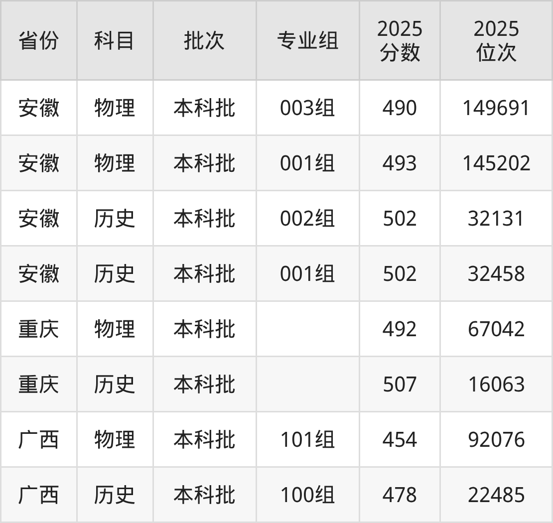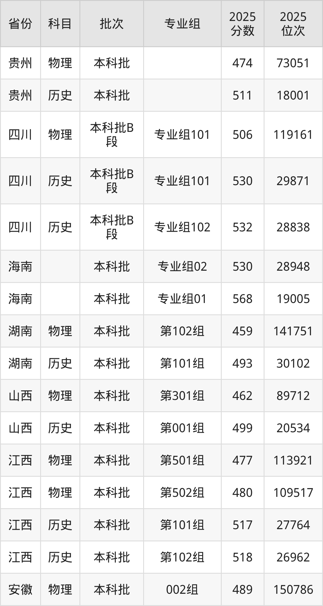 2025年投档录取最低分为474分,录取最低位次为73051名。