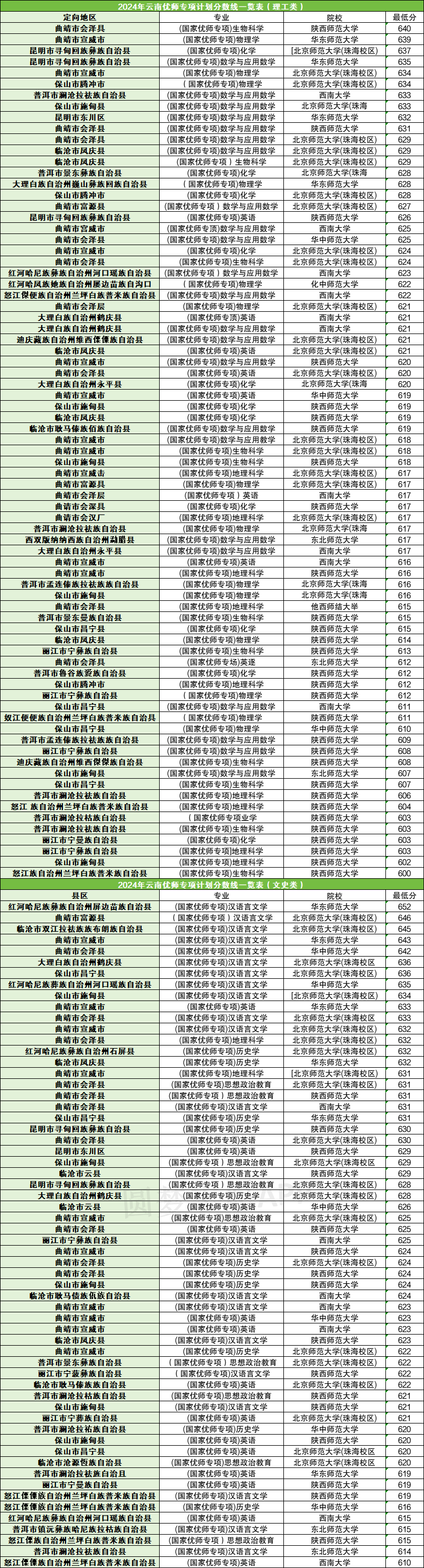 在文科方面,录取线最低的是西南大学的英语,定向到怒江傈僳族自治州兰坪白族普米族自治县,分数是610。